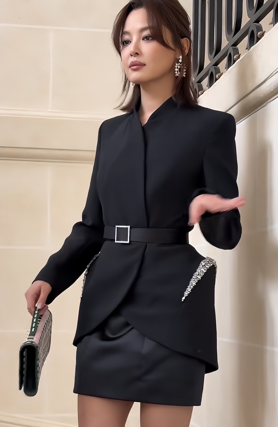 一身黑色丝绒套装搭配黑色长裤,穿在她身上依然没有任何攻击力,黑长直的头发披散,举手投足都散发着一股温柔,气质一骑绝尘。