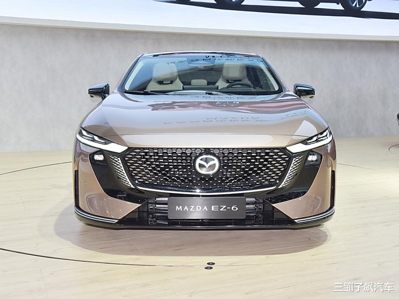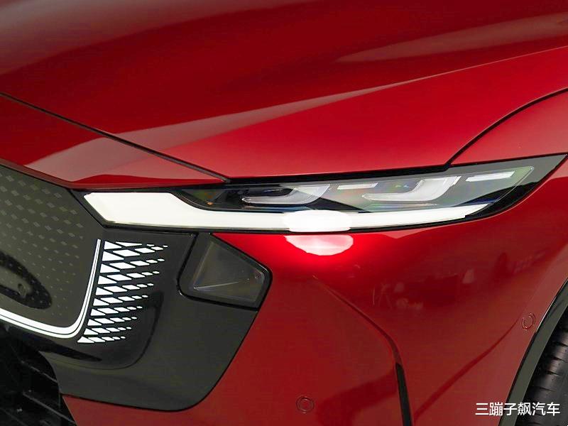 可以看到,马自达EZ-6虽然采用了更贴合新能源身份的封闭式前脸设计,但原有的格栅布局保留了下来,视觉层次更丰富,加入“星空点阵”填充(可点亮)和熏黑饰件、镀铬饰件装饰,很有高级感和未来科技感,再搭配上锐利的LED大灯组和凌厉线条刻画,视觉冲击力十足,妥妥“颜兽”气质。