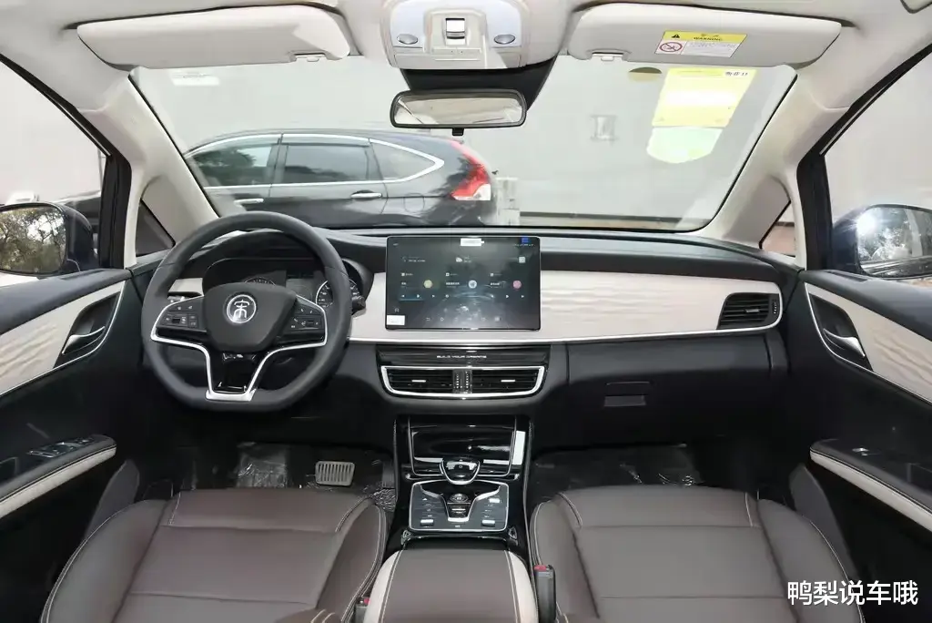 车内中控台以及门板处配备与浅色系饰板包裹,饰板处还将融入独特的纹理设计,配合还使用了渐变配色的座椅,挺细腻的。中控配备了皮质多功能方向盘,5英寸的仪表盘和12.8英寸的悬浮式中控屏幕,内置DiLink智能网联系统和高通6125芯片,拥有导航系统、车联网、OTA升级、语音识别控制系统、应用商店和K歌等功能。