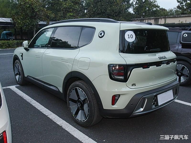 车身侧面,Smart精灵5号视觉效果简约大方,无框车门、隐藏式门把手、车顶行李架是亮点,彰显高逼格。