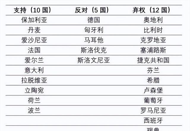 投票结果颇具戏剧性:10个国家投赞成票,5个国家反对,12个国家选择弃权。这种分布格局不仅凸显了欧盟内部的深刻分歧,更引发了人们对这一决议合法性的质疑。