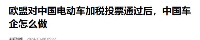 以上信息来源:澎湃新闻2024-10-08——欧盟对中国电动车加税投票通过后,中国车企怎么做
