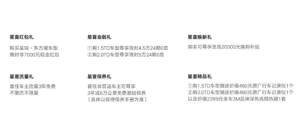 最让人心动的是价格——全系现金优惠7000元后,星瑞起售价下探至9.27万起,置换用户还能享至高20000元补贴。用10万级的预算,就能拥有‘能省能跑’的动力、智能贴心的配置和扎实可靠的底盘,这样的星瑞,难怪能成为65万家庭的选择。