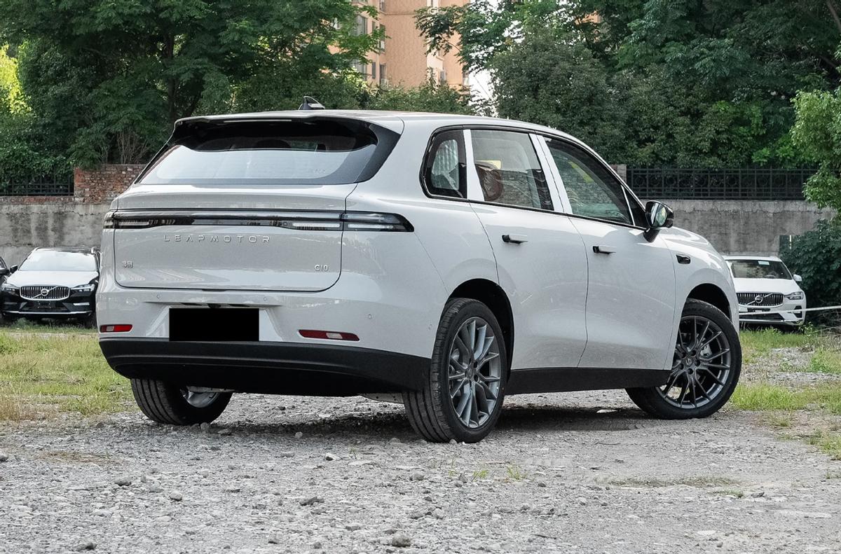 车身侧面采用传统SUV造型,长宽高分别为4739/1900/1680毫米,轴距为2825毫米,配备隐藏式门把手、黑色外后视镜壳和多辐式熏黑轮毂,车尾部分提供有车顶扰流板、隐藏式后雨刷以及贯穿式尾灯,激光雷达版本搭载Leapmotor Pilot组合驾驶辅助系统,搭载车顶激光雷达和高通骁龙8650芯片,支持高速领航、智能泊车等功能,暂不支持城市领航。