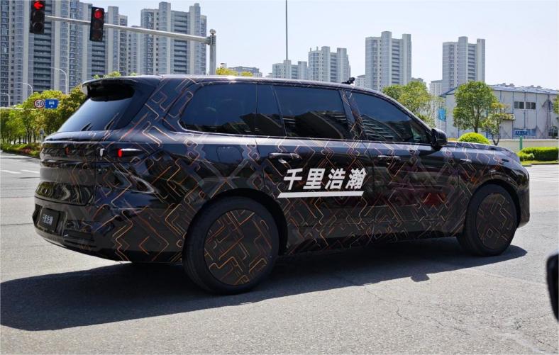 新车饱满的车头搭配封闭式前脸设计,宽大的贯穿式灯组两端采用三重光源设计,上方配有日行灯带,下方粘贴的六方格造型的银河车标,提升车头的辨识度。前脸加入立体化设计,两端疑似配备空气动力学组件,下方疑似配备矩形的主动进气格栅。此外,车顶前沿位置搭载较为宽大的瞭望塔式激光雷达,将搭载千里浩瀚辅助驾驶系统。