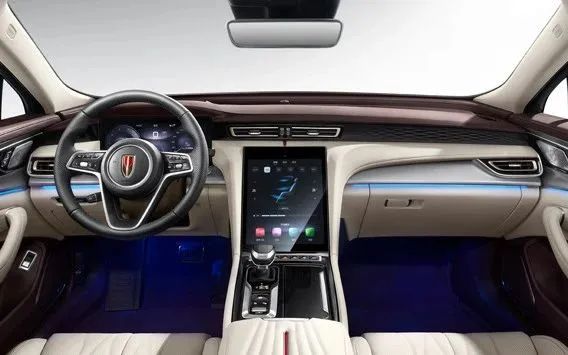 内饰方面,采用T字形布局,中控台层次分明,对称式结构很符合咱国人的审美。中间一块12.6英寸的竖置屏幕,左边是12.3英寸的全液晶仪表盘,屏幕又大功能又全。车内还有253色氛围灯,晚上开车的时候,氛围感直接拉满。在用料上,红旗H5不愧是豪华品牌,车内到处都是软性材质,用手一压还有回弹。真皮方向盘造型简约大气,大小合适,操作起来特别灵活。