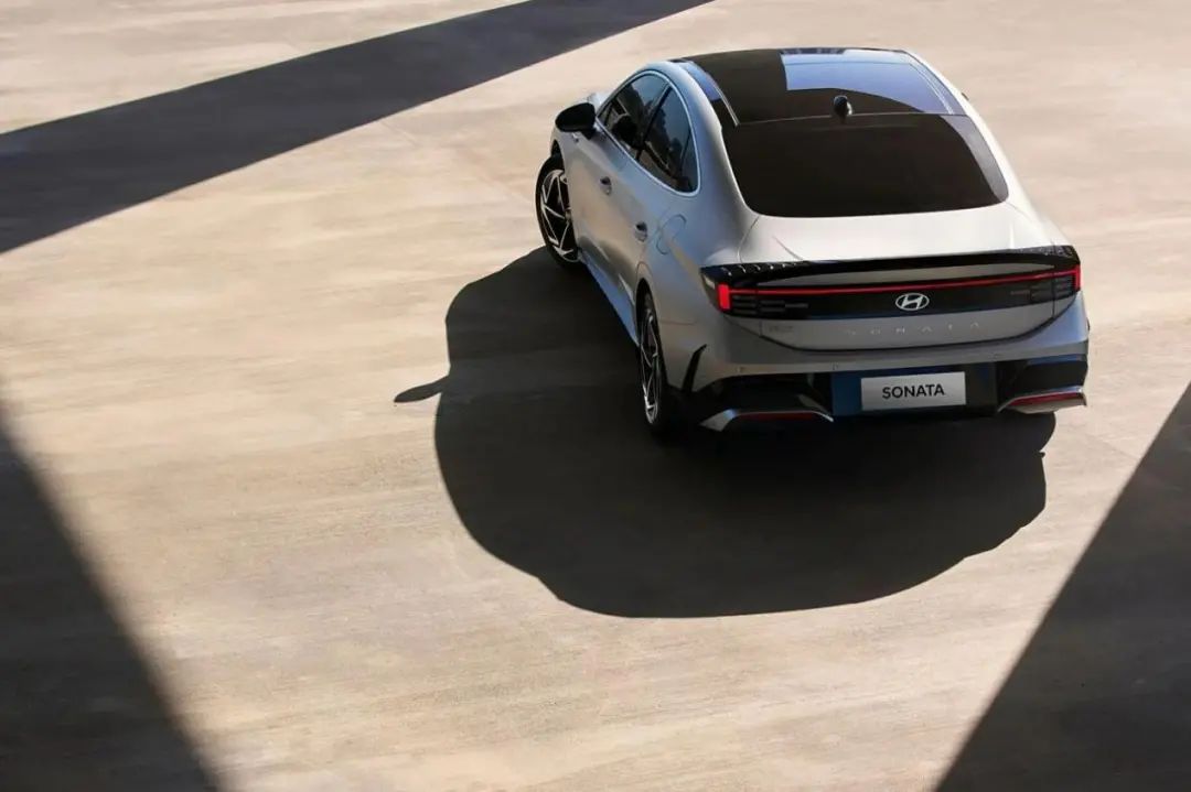 索纳塔采用全球ONE MODEL统一设计,基于全球统一数据、模具和相关标准开发而来。外观造型以星际战舰为灵感,打造时尚与科幻感兼具的星际战舰前脸,更具未来冲击感。来到车侧,采用轿跑式的溜背造型设计,腰线充满力量感,有着很强的运动属性。流畅的车身线条延伸至H造型贯穿式尾灯,尾灯组使用众多数码点阵元素,颇有辨识度,搭配尾厢盖上的小鸭尾,使车辆看起来很动感。同时还推出了N Line版本车型,采用了更彰显运动的的磨砂漆面和双边共四出排气布局。
