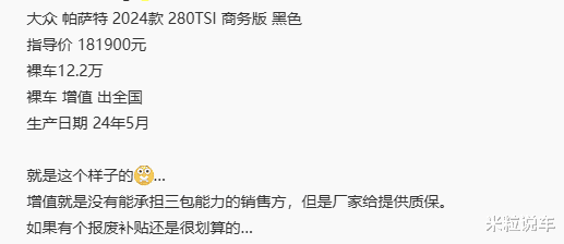 总结:这款帕萨特最大的优势在于价格便宜,车内空间感不错,但是想要豪华的配置,奢华的内饰设计,显然并不是这款新车的优势。我对这款新车的定位认知就是一款合资代步车!严格意义上来说,与十万出头的别克君威并没有本质上的区别,以实惠为主!当然,1.5T的帕萨特更强,但是我们这款1.4T的车型价格明显更香。