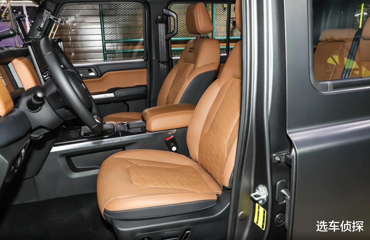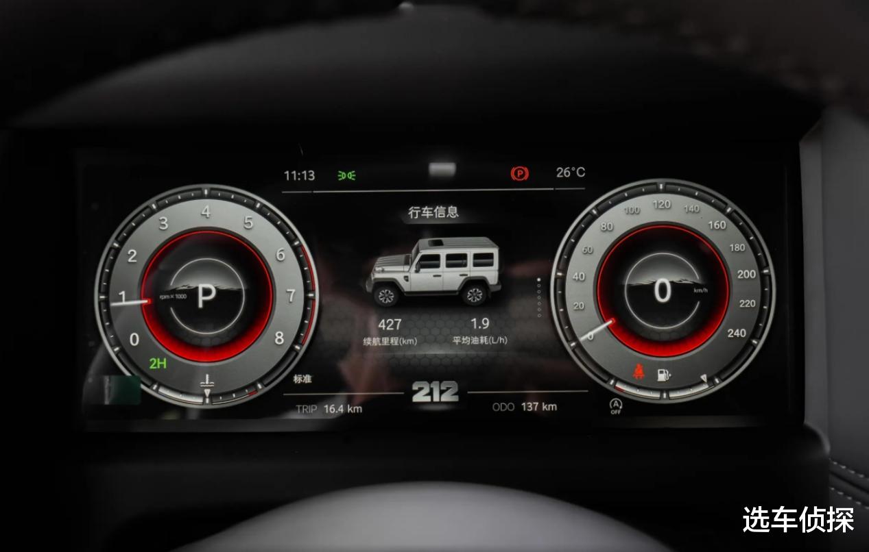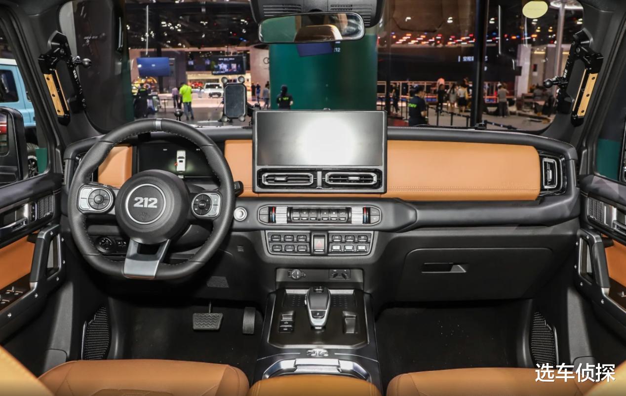 超过4.7米的车身与2.86米的轴距意味着内部空间宽敞,为了便于越野时盲操,车内保留大量物理按键。在复古的外观下,内饰并不落伍,全液晶仪表、12.3英寸悬浮式中控屏、语音控制、4G车联网、百度地图、OTA升级、手机APP远程控制等都是标准配置。