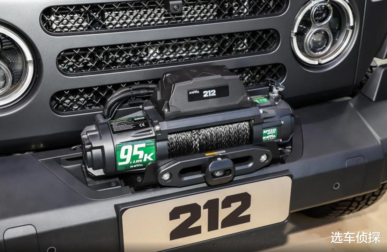 对于越野玩家,212官方提供了原厂的越野选装包,内含AT全地形轮胎、氮气减震器、12000磅电动绞盘。氮气减震器耐高温、性能更稳定,电动绞盘则是越野玩家的必备品,陷车或者救援都可以配上用场,这些配置一步到位,省去后期改装的烦恼与潜在风险。