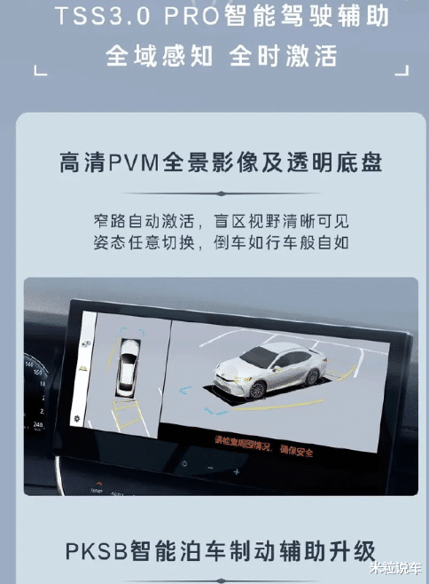 此外,还多出了TSS3.0的Pro智驾版本系统,相较于上一代3.0的智驾,这套智驾系统变得更加完善,可靠性更强,而且智能化的程度更高。升级版的智驾系统不仅多出了智能泊车制动辅助系统,也拥有行人实时追踪功能,透明底盘也让这款丰田凯美瑞配置更加丰富。