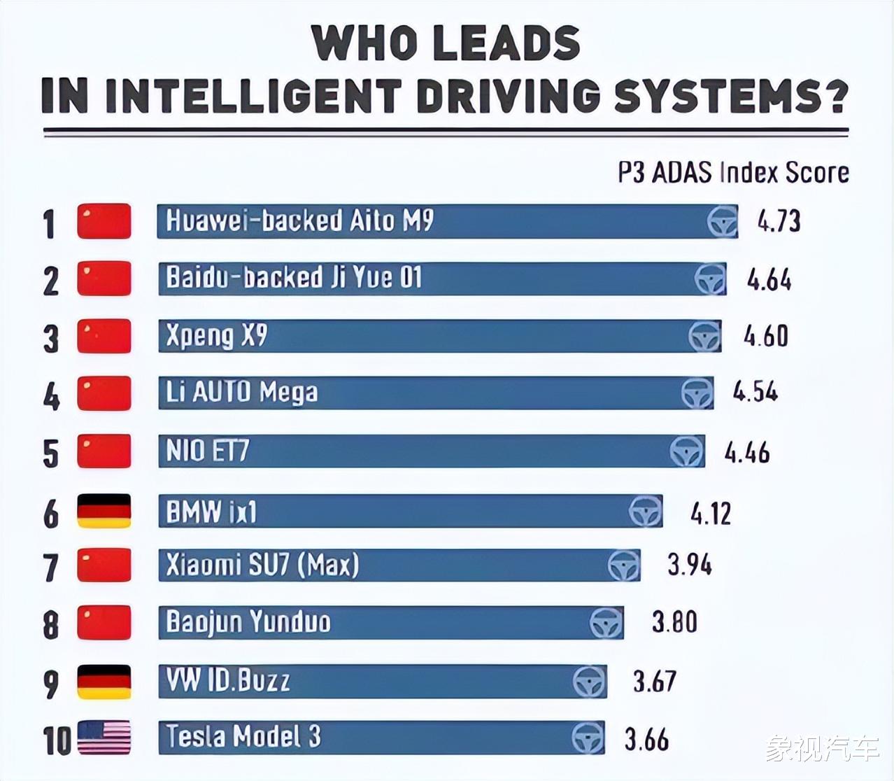 懂车帝智驾测试的争议还未落下帷幕,特斯拉智驾案件就在美国法院败诉,吃了一个17.4亿元的天价罚单。懂车帝的脸被打得生疼,它的测试在美国法院面前,瞬间成了笑话。事实上,国外也有智驾测试,结果跟懂车帝的刚好相反。例如在德国的测试排名中,前五名被中国汽车包揽。华为M9排名第一,百度极越01排名第二,小鹏X9、理想MEGA、蔚来ET7分别位居第三、四、五,特斯拉却仅排在四十名,在榜单上垫底。