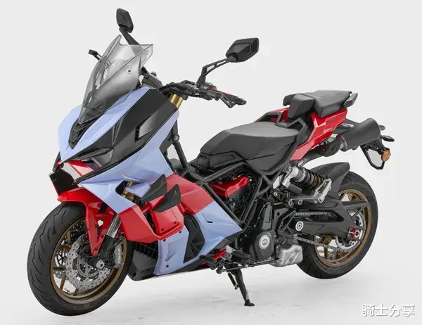 这款250龙骨踏板和现有的鸿250系列也有点不一样,应该是全新研发的车型,它前脸比较锐利,车身较为协调,所搭载的单缸水冷引擎最大功率为18.5KW,最高设计时速114km/h,动力性能略显保守。