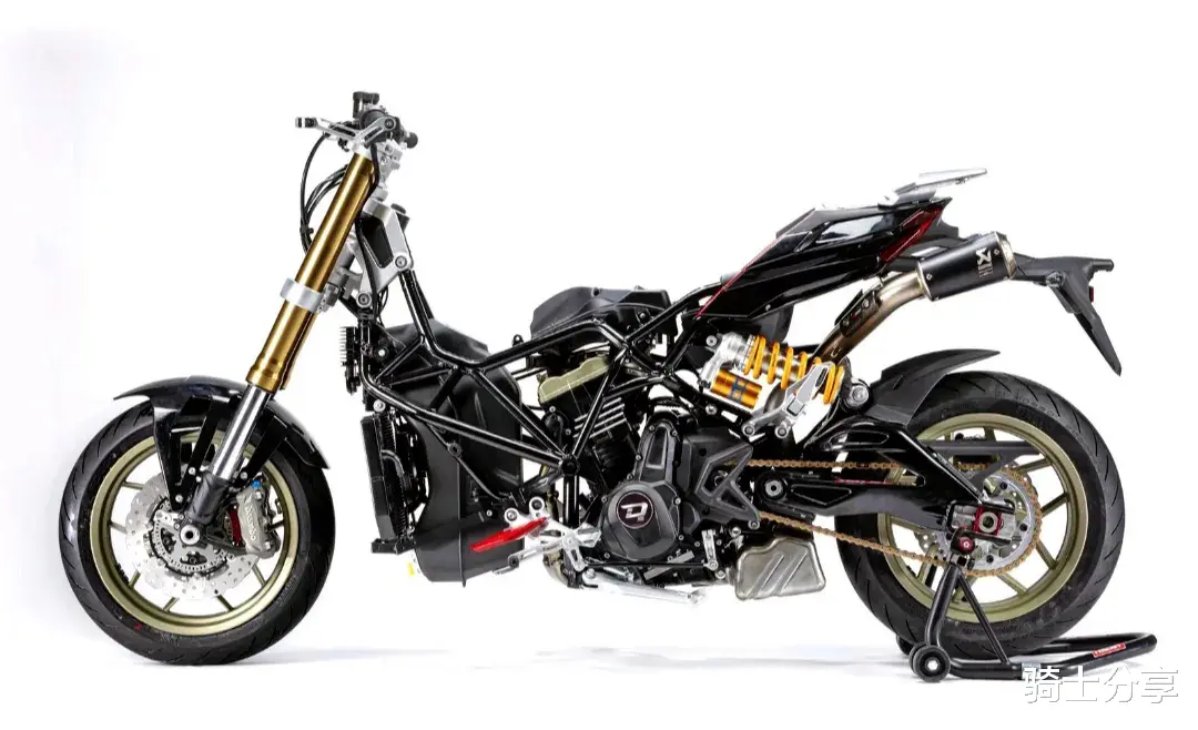 而这款车所搭载的动力总成也是另辟蹊径,它直接搬运了跨骑车的发动机为其所用,该引擎实际排量693cc,最大功率50KW,最高设计时速190km/h,并采用的是链条传动,还需要换挡,这将是一种什么样的体验呢?