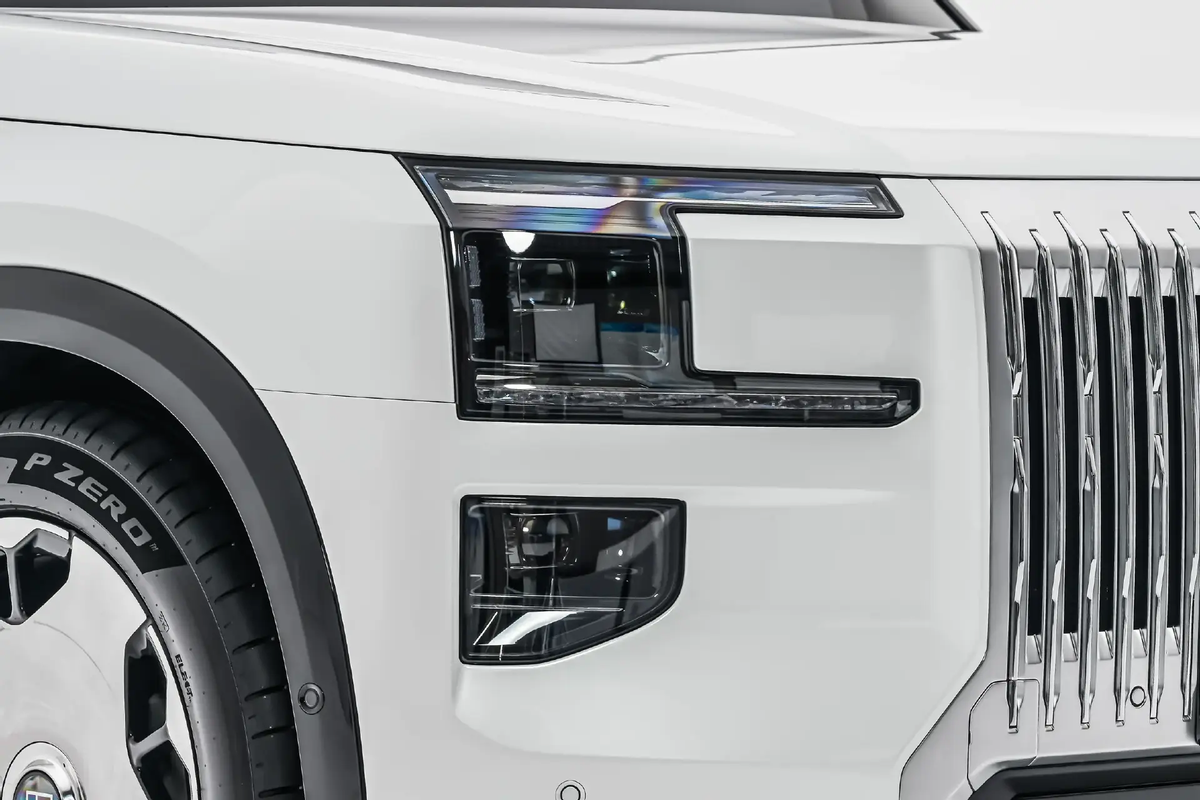 当然,C形日行灯包裹的头灯组、带有环幕星钻效果的尾灯,都会在细节上展示新技术为这一批技术旗舰带来的晋升。值得一提的是,现在的厂商好像都在跟灯较劲,问界有xPixel百万像素大灯,而极氪9X的尾灯则镶嵌42242个钻石切割面。值得注意的是,极氪9X竟然有类似奥迪黑武士的装饰版本,保留22英寸镜面轮毂、D柱镀铬的同时,更多熏黑处置虽不及奥迪的一黑到底来得夸张,但确实能让它显得不那么商务化。