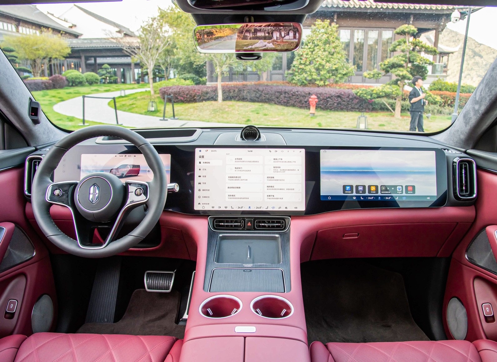 进入车内,新车采用了对称的平直中控台设计,配备三联屏,由12.3英寸液晶仪表、15.6英寸2K中控屏与16英寸副驾娱乐屏组成,搭载HarmonyOS 4.0系统,支持多设备无缝流转。新增"松露棕"内饰配色,座椅采用Nappa真皮包裹,前排配备16向电动调节/加热/通风/按摩功能,六座版第二排独立座椅带电动腿托与零重力模式。配置方面,新车配备了HUAWEI SOUND 19扬声器音响系统,峰值功率1000W,而双50W手机无线快充,支持反向供电,舒适配置方面新车还有着冷暖智能冰箱(0-50℃温控)及投影仪套装(选装)。