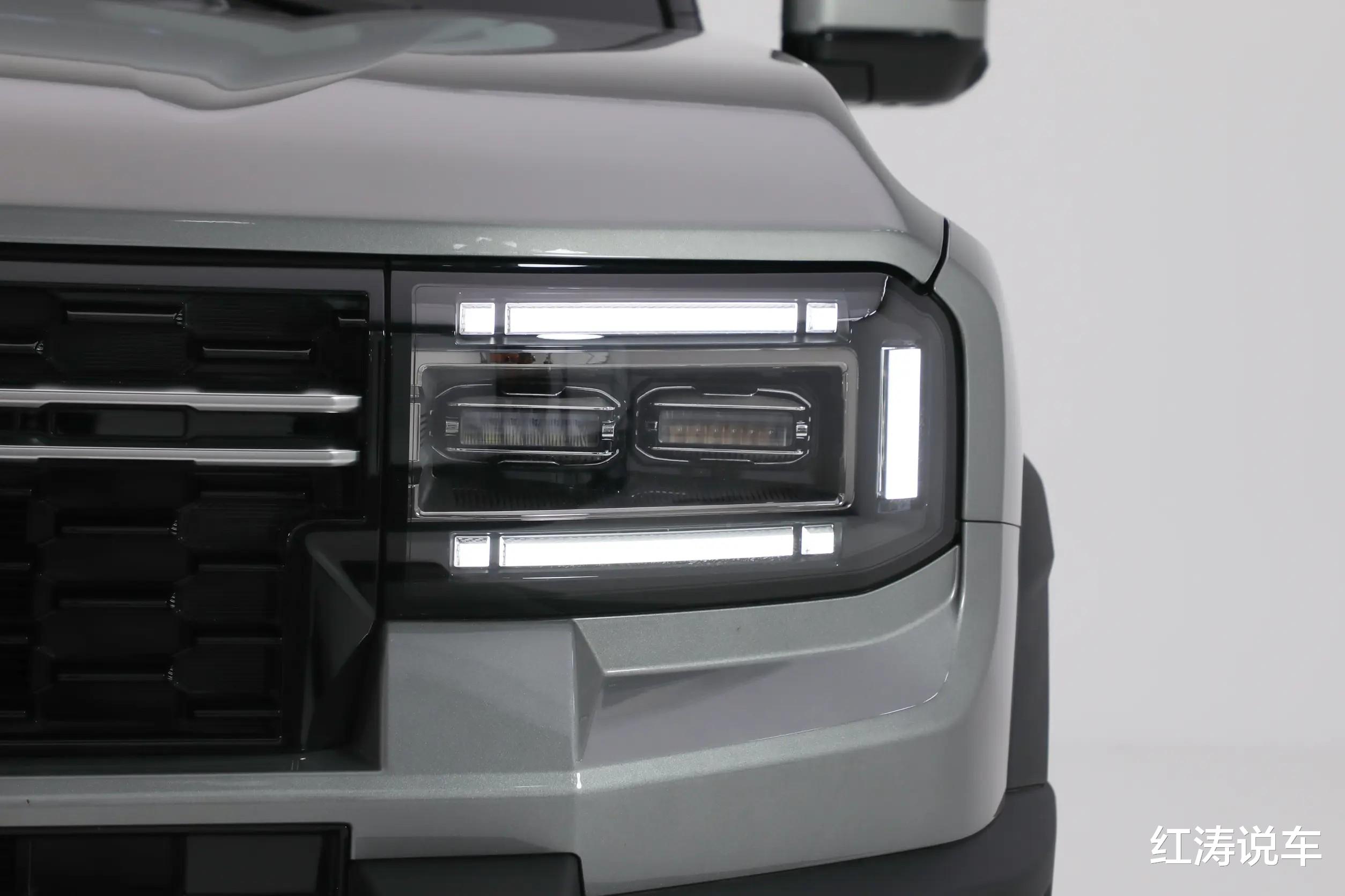 外观方面,捷途纵横G700采用全新设计语言,车头高大立体,前脸长方形黑色格栅中间带有捷途品牌Logo,矩形LED大灯怒视前方,再加上大面积的黑色包围以及金属护板,给人第一印象--硬汉!