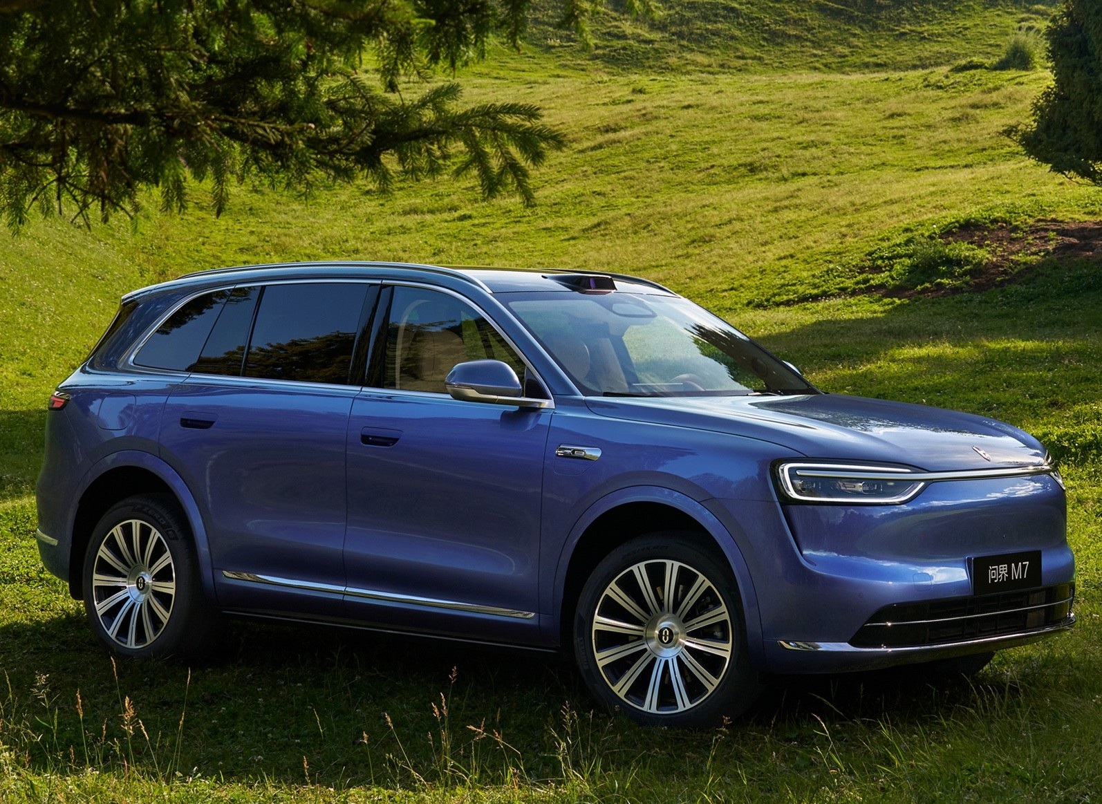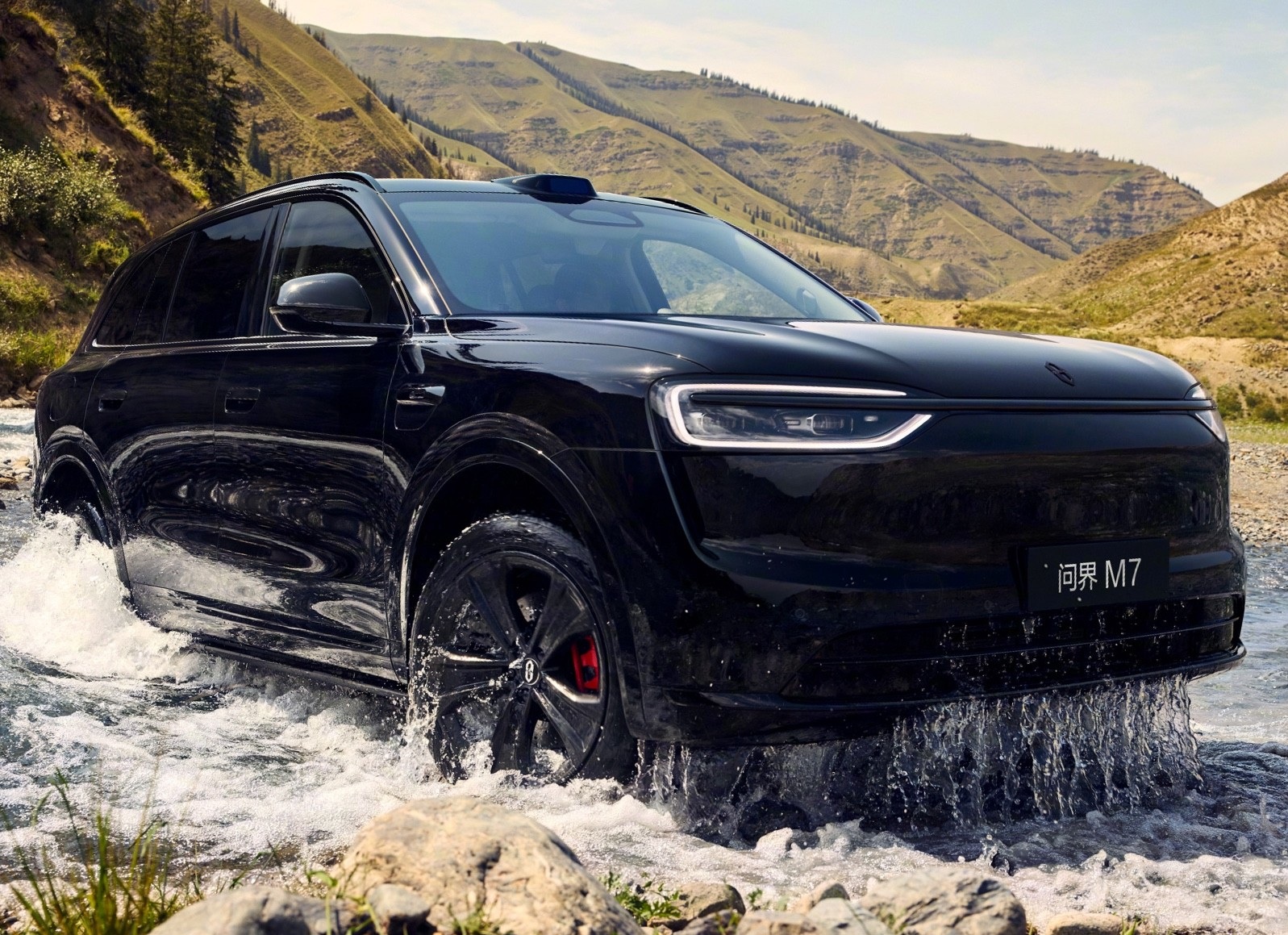 我们首先来看新车的外观设计方面,新车采用与M8/M9同源的"鲲鹏展翼"前脸设计,封闭式格栅内置主动进气管理系统,配合星环双翼贯穿灯组(由720颗LED光源构成),实现0.28Cd超低风阻系数。激光雷达与毫米波雷达完美融入前保险杠,192线激光雷达探测距离达250米,配合华为ADS4.0系统实现厘米级环境建模。新增的"牧野青"纳米金属漆采用三层喷涂工艺,在强光下呈现青金渐变效果。