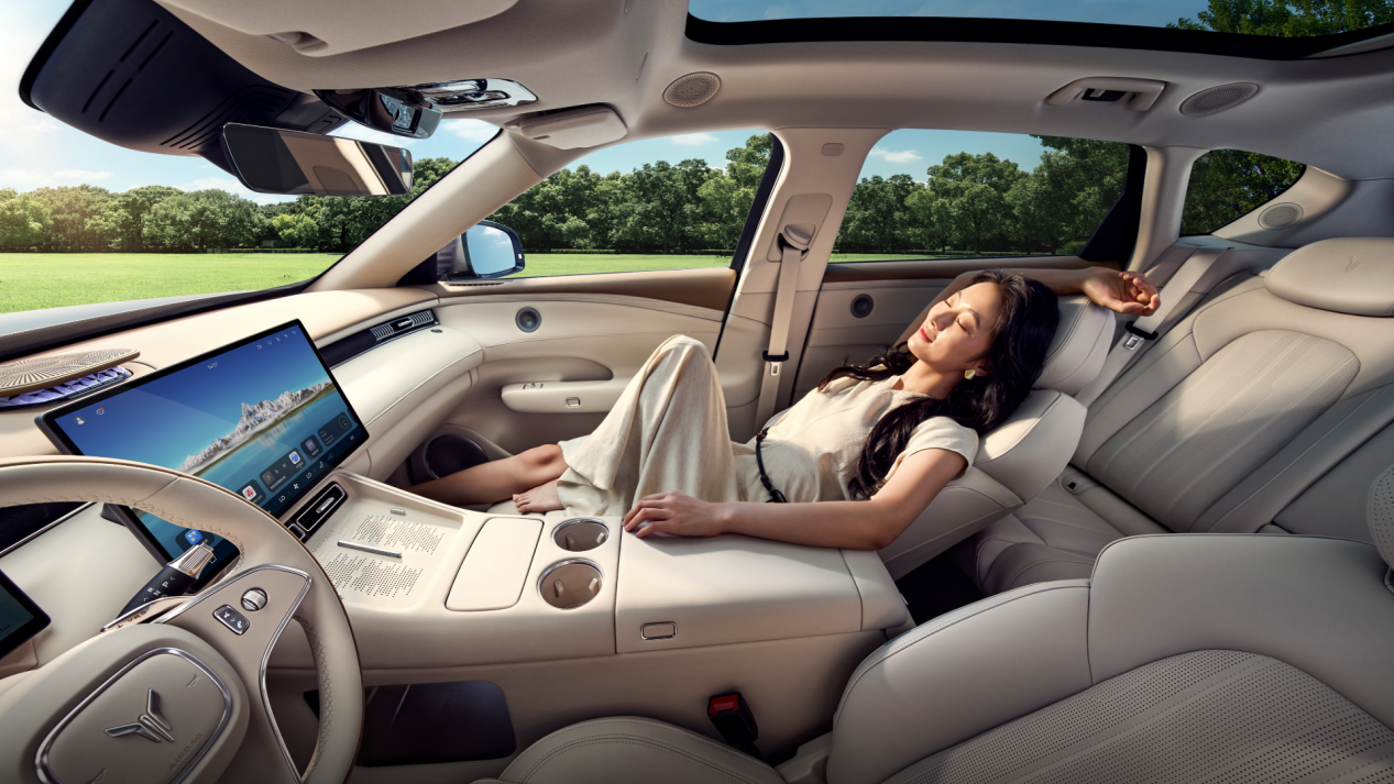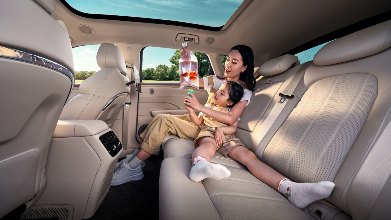 座舱静谧性令人印象深刻。全车35处NVH优化,182项降噪措施,吸隔声材料使用面积达到了43平米,配合四门电吸门(选装)和前后排双层隔音玻璃,120公里/小时的时速下,车内噪音比同级车型要低。22扬声器Voyah Sound音响(选装)系统支持7.1.4全景声,256色氛围灯可根据音乐节奏变换色彩,共同营造出沉浸式影音空间。车内的一些小细节设计的很贴心,比如中央扶手箱的7L冷暖箱支持-6℃至50℃温控,采用双侧开门设计,24度到0度10分钟就能搞定;后备箱内置220V电源插座,户外露营时可外接电器设备。