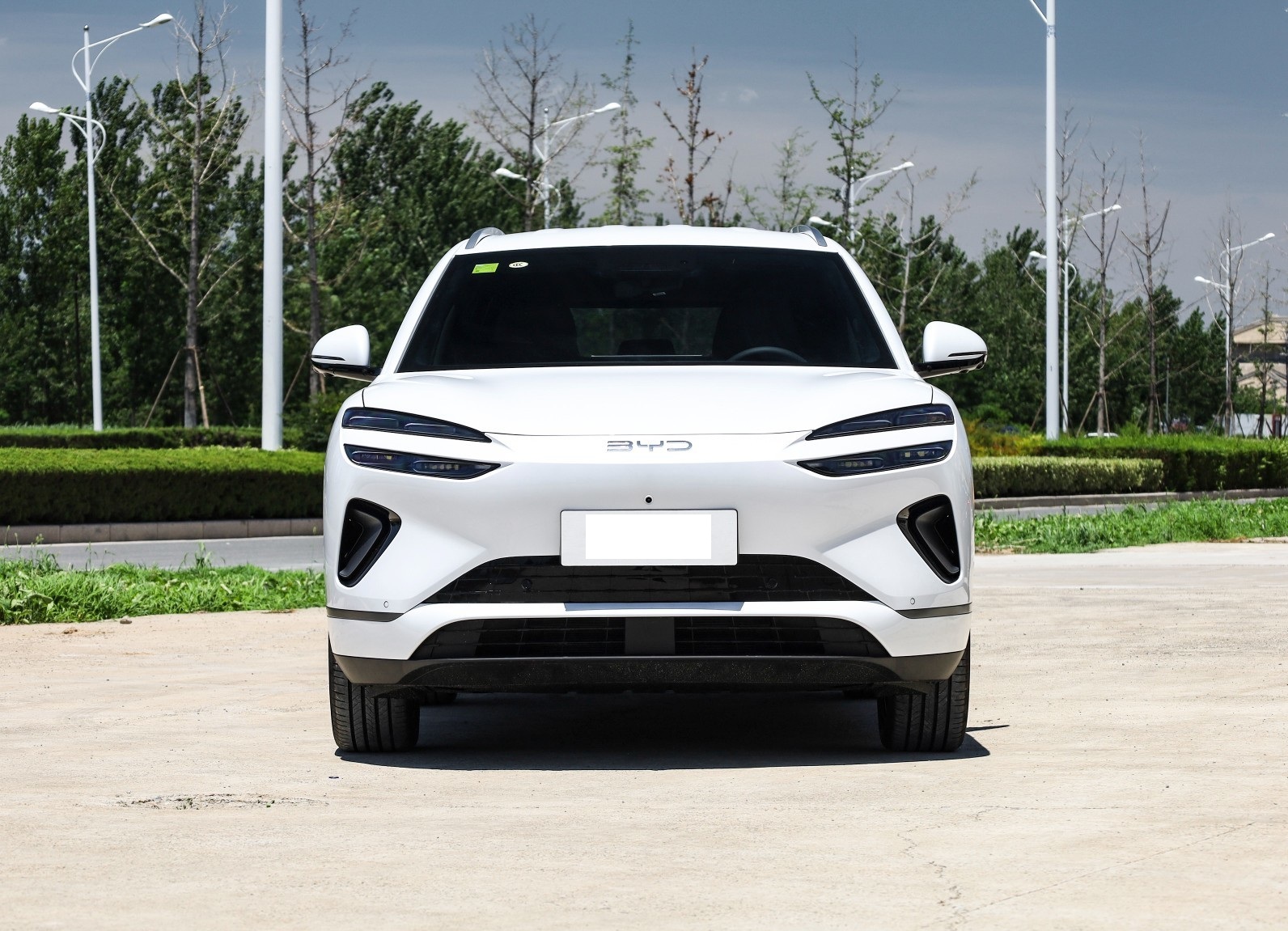 我们首先来看新车的外观设计方面,海狮06前脸采用颠覆性的"双瞳"分体式灯组设计,上层冷白色日行灯与下层暖金色主灯构成极具辨识度的"双眼皮"造型,配合半封闭式格栅(DM-i版)或全封闭饰板(EV版),形成海浪涟漪般的立体层次。前包围通过双层熏黑进气口与导流槽强化运动基因,机盖四条棱线如涌动的浪脊,在灯光下呈现动态光影变化。争议性设计在于灯组比例,部分用户认为上层灯带过宽,需时间适应这种先锋美学。