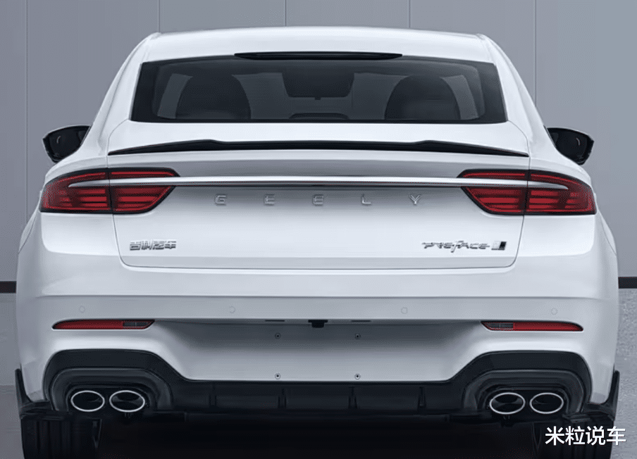 从侧面来看,匹配了红色的刹车卡钳,搭载了18英寸的轮毂。车身数据部分,这款吉利星瑞的长宽高分别为4825/1869/1469mm,轴距是2800mm。虽然是一款紧凑型的三厢轿车,但很明显这样的尺寸就是B级车的水准。值得一提的是,相较于现款,车身长度也有着一定程度的提升。至于车型尾部,更是性能感满满,匹配了双边共四出的镀铬排气管。