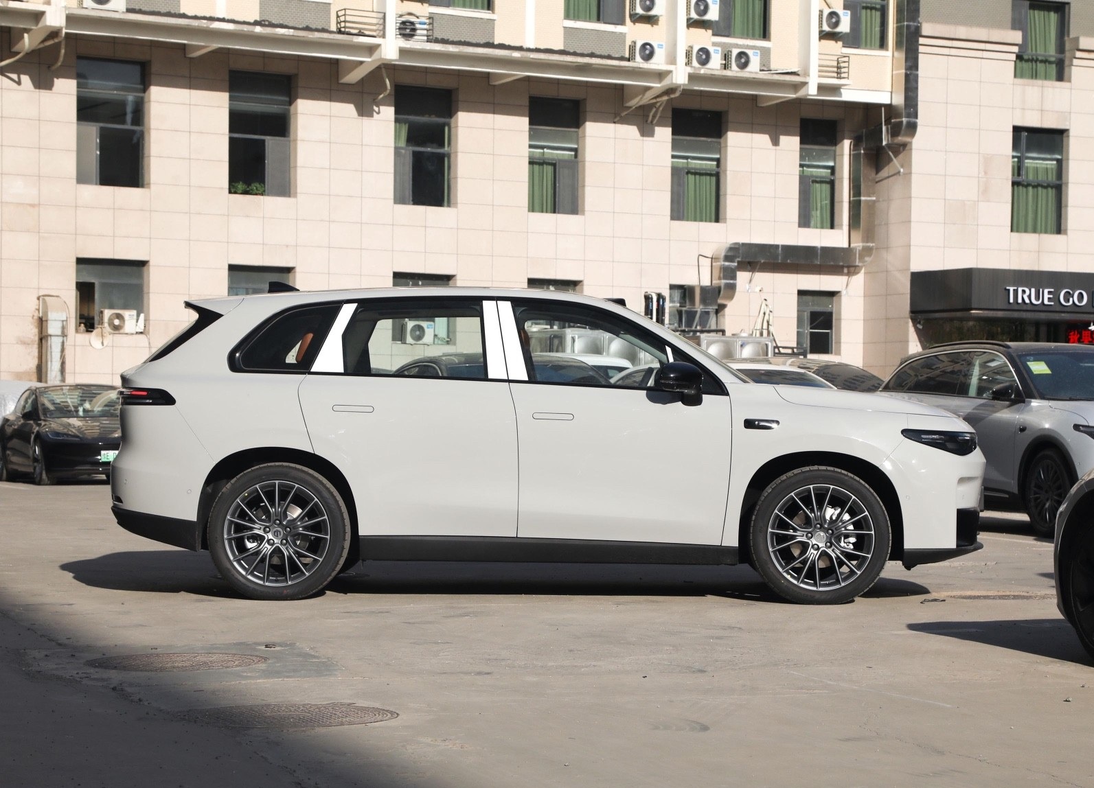 再来看新车的车身侧面部分,侧面采用4739×1900×1680mm标准中型SUV比例,2825mm轴距通过俯冲式腰线强化运动感。隐藏式电动门把手具备-20℃冰雪破冰功能,30°迎宾角度设计搭配235/55 R18三叉戟轮毂(可选20英寸),轮拱处棱线与悬浮车顶形成视觉延伸。B柱后侧窗采用隐私玻璃,D柱倾角较老款减小5°,提升后排头部空间至1015mm。新增的侧裙镀铬饰条与车身同色轮眉,细节处彰显精致度。