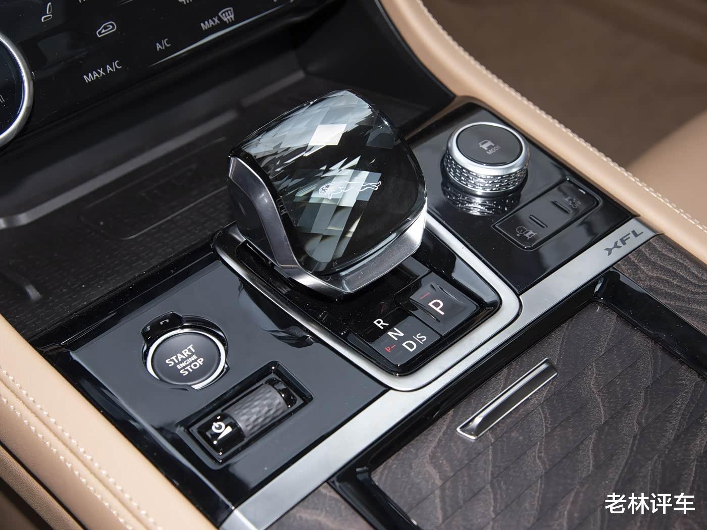 具体来看,它的液晶仪表盘为12.3英寸,中控屏幕为11.4英寸,前排地台上还配有手机无线充电面板和水晶电子挡杆,内饰所营造的豪华感和科技感还是很不错的。