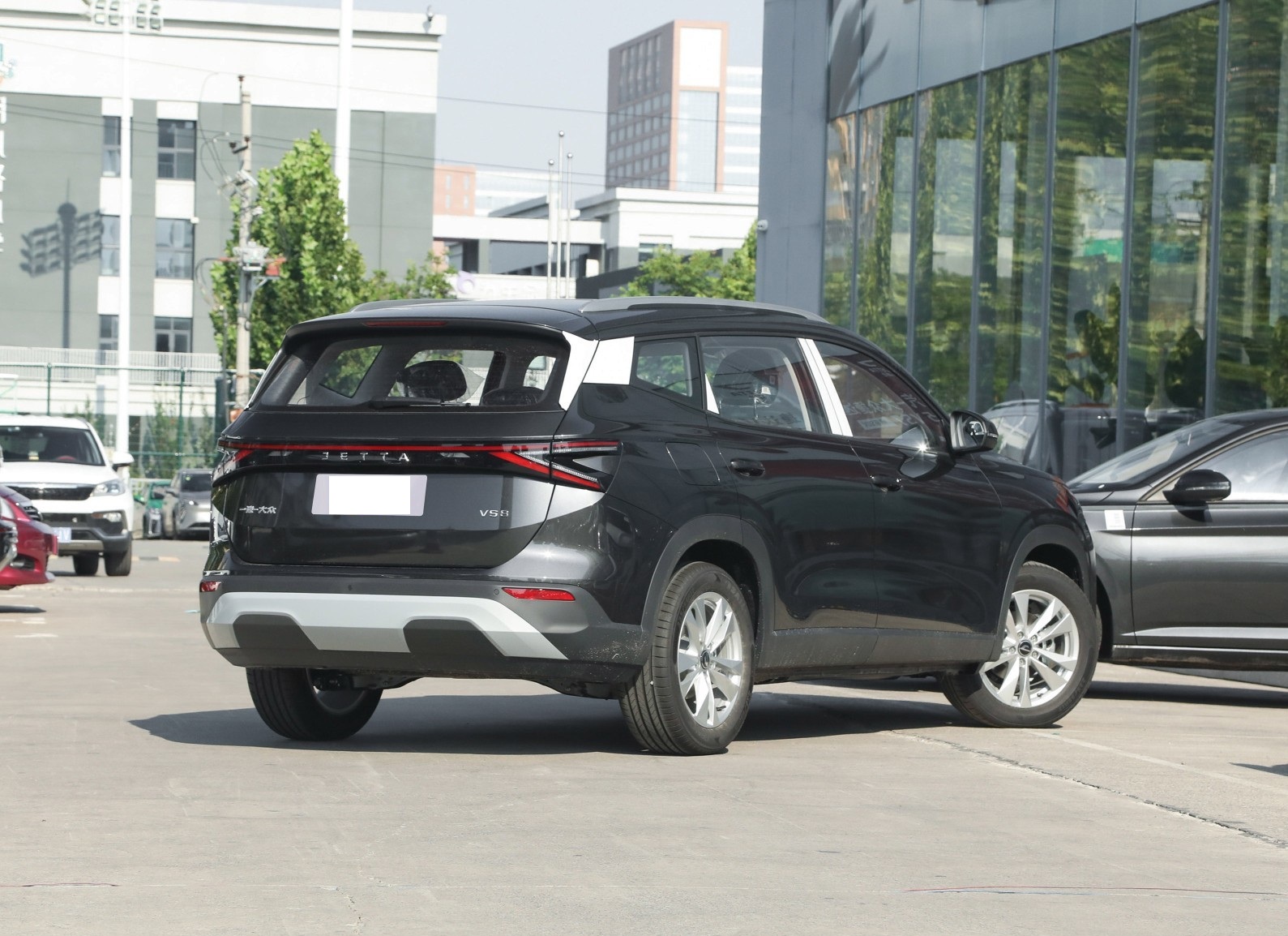 再来看车尾部分,尾部以Y型贯穿尾灯为核心,支持动态流水效果,配合JETTA字母标识形成视觉焦点。传承了大众系的设计语言。后包围采用黑银撞色设计,隐藏式排气保持整体性。后保险杠同样配有银色护板,与车头形成呼应,隐藏式的排气布局则让车尾整体感更强。总体而言,捷达VS8的外观设计精准地瞄准了家庭用户的审美——它不追求惊艳,但追求耐看和信赖感,这种“显贵”的气场远超其价格区间。