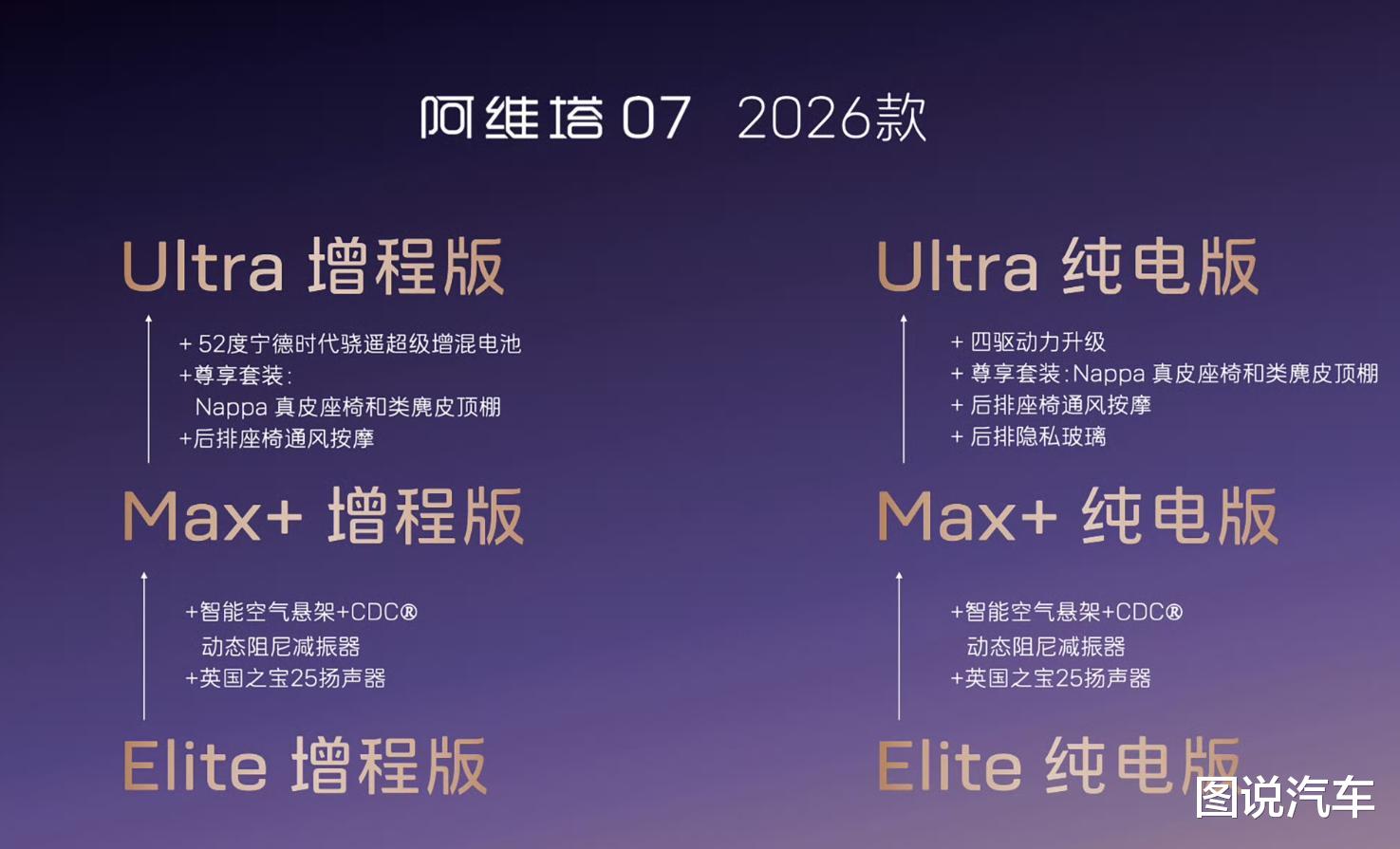 ①、目前的新款阿维塔07我们并没有试驾,对于E版的底盘表现,空间有没有升级,目前不好说。但是老图可以给阿维塔07这台车下一个定义: