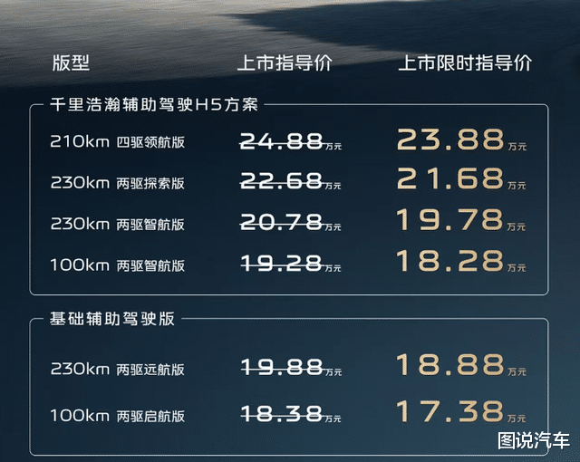 三者最大的区别集中在辅助驾驶层面,远航版用的地平线征程驾驶芯片,而智航版和探索版使用的是Orin-Y,支持千里浩瀚H5辅助驾驶系统上车。如果在意辅助驾驶的话, 那远航版到这里就淘汰了。
