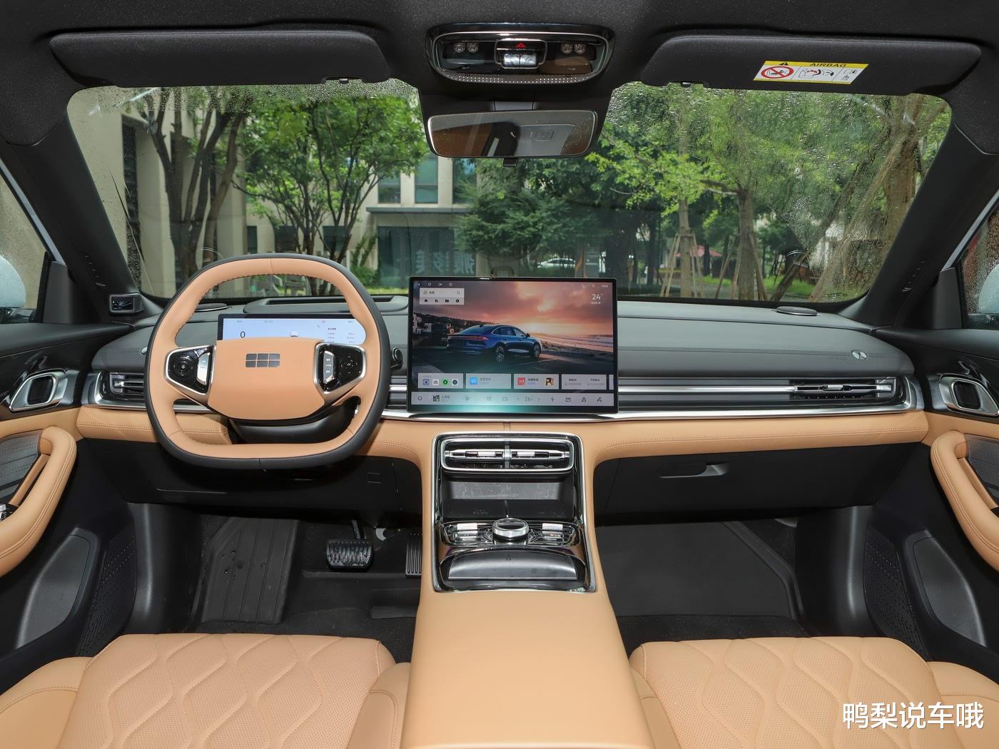 内饰方面,它有三种内饰配色可选,分别是霁雪白、秋韵棕、烟波灰 。车内采用了环抱式座舱设计,顶层皮革软包、中层木纹饰板与底层哑光金属组合,质感营造的相当不错。中控台采用分层设计,上面是一块15.4英寸2.5K高清悬浮屏,配合10.2 英寸全液晶仪表盘和16.6英寸 W-HUD 抬头显示,组成了三屏联动系统,车机搭载了银河Flyme Auto智能座舱系统,支持语音控制、车道级导航等功能。中控下面保留了实体空调按键,实用性不错。