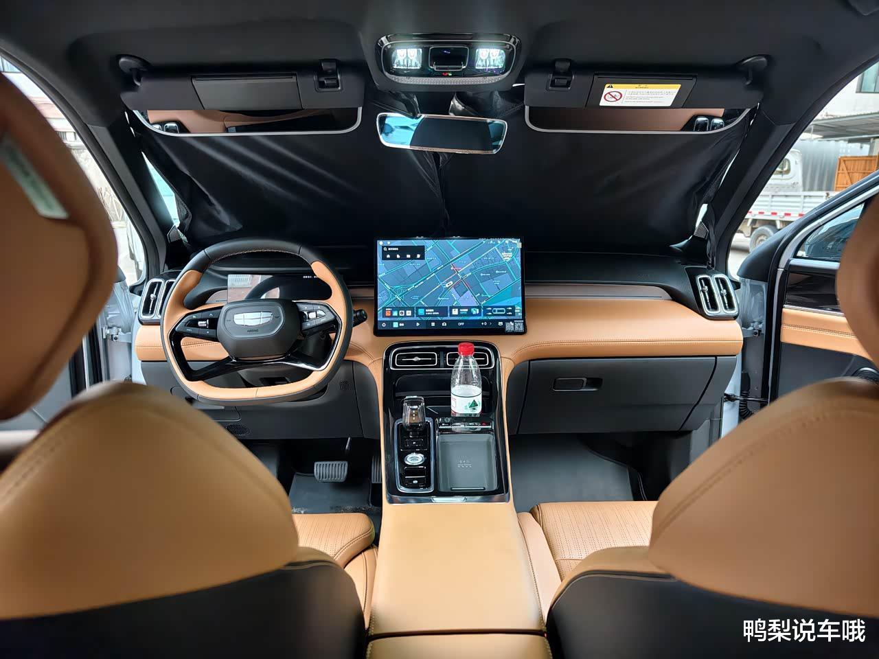 内饰方面,车内提供了琥珀金和松露灰两种配色方案,还有大面积的软包材质覆盖,手能触摸到的地方基本都是软软的。中控是一块15.4英寸的2.5K超清大屏,搭载了7nm制程的“龍鹰一号”芯片,算力很强,操作起来像手机一样流畅。高配车型还有25.6英寸AR-HUD抬头显示,开车时不用低头就能看到导航、车速等信息。