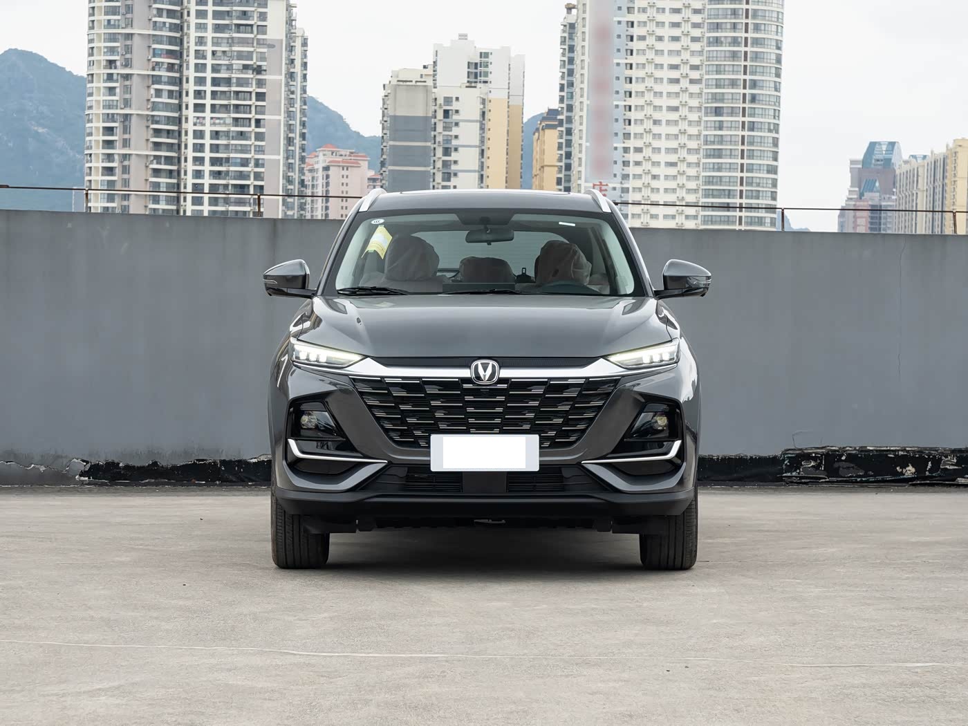 我们首先来新车的外观设计方面,新车前脸延续长安 “纵横万象” 设计体系,将大气格调与运动气息完美平衡。倒梯形大嘴式进气格栅采用 V 字形矩阵式细节布局,搭配粗壮的银色镀铬饰条横向贯穿,向两侧延伸并与犀利的 LED 大灯组无缝衔接,拉伸车头视觉宽度,让整车显得格外精神。核心亮点是全系标配的 LED 光源组合:狭长大灯内部集成日间行车灯与转向灯,灯腔采用熏黑处理,夜间点亮时 “眼神” 锐利,配合下方横向排布的 LED 雾灯,照明效果与辨识度双重在线。前包围采用三段式设计,两侧通风开口以镀铬饰条勾勒轮廓,中间黑色下护板强化 SUV 硬派气质,新增的 “碧空蓝” 金属漆在阳光下呈现细腻光泽,彻底摆脱入门级车型的廉价感。