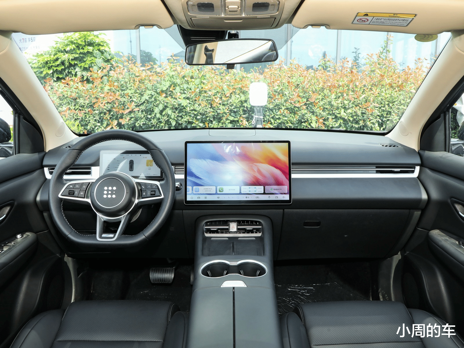 不止是车尾的轮廓相似,蓝电E5 PLUS的内饰也能够看到旧款问界M7的影子,比如该车采用了上深下浅的内饰配色,并提供有胡桃棕、赤霞橙以及全黑配色;怀挡式换挡杆为中央操控区留出了充裕无线充电面板以及杯架等储物空间,在驾驶员前方是8.8英寸液晶仪表,15.6英寸悬浮式中控屏尺寸内部则是搭载了HUAWEI HiCar 4.0科技座舱,支持多种形式的手机互联、语言连续识别以及车载KTV等功能,另外,新车还引入了豆包AI大模型,进一步提升了车机的可玩性。