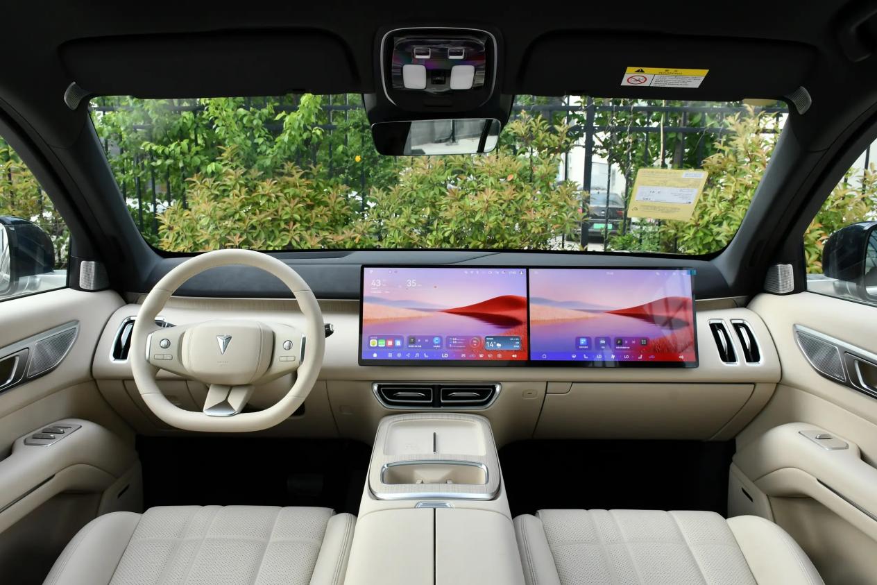 中控和副驾是2块15.6英寸的联屏,分辨率2.5K,另外后排还标配了一块21.4英寸的吸顶娱乐屏,分辨率达到来了3K,显示效果清晰,搭载鸿蒙座舱harmony space5,操作界面直观流畅,响应迅速,大大降低用户的学习成本。提供百变主题空间,可选范围广,系统支持多屏互动与智能语音助手,驾驶者可通过语音来控制导航、音乐、空调等常用功能,减少手动操作,增加行车安全,智能语音对话清晰,理解能力强,支持可见即可说和语音连续识别功能,多指令也能轻松识别并完成。