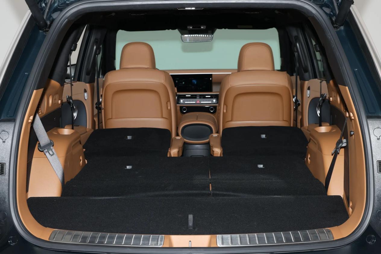 满载6人时,后备厢的空间还挺大,能放得下6个20寸行李箱,第三排和第二排座椅都能放倒,并且是完全放平的状态,此时车内的空间就非常大了,纵深超过2米,当做自驾游床车来用都没问题,
