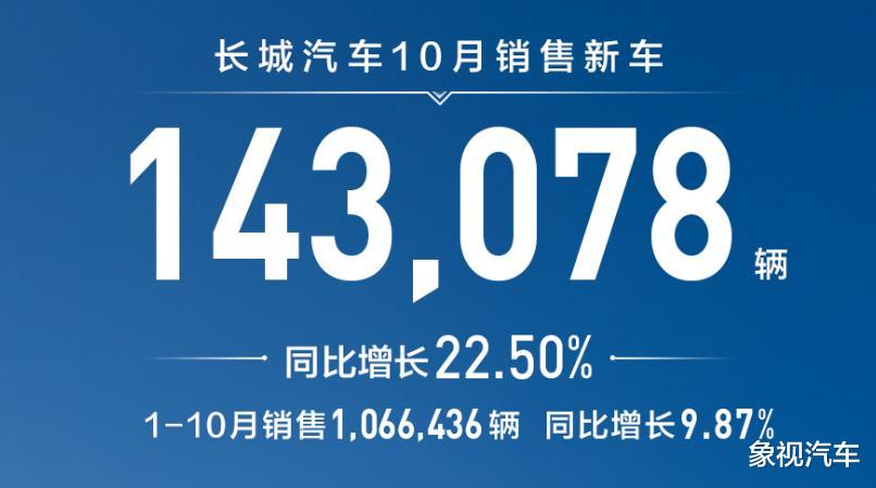 销量快报显示,长城汽车10月份总销量为14.3万台,同比劲增22.5%。这样的成绩,堪称长城历史最近10月销量表现。