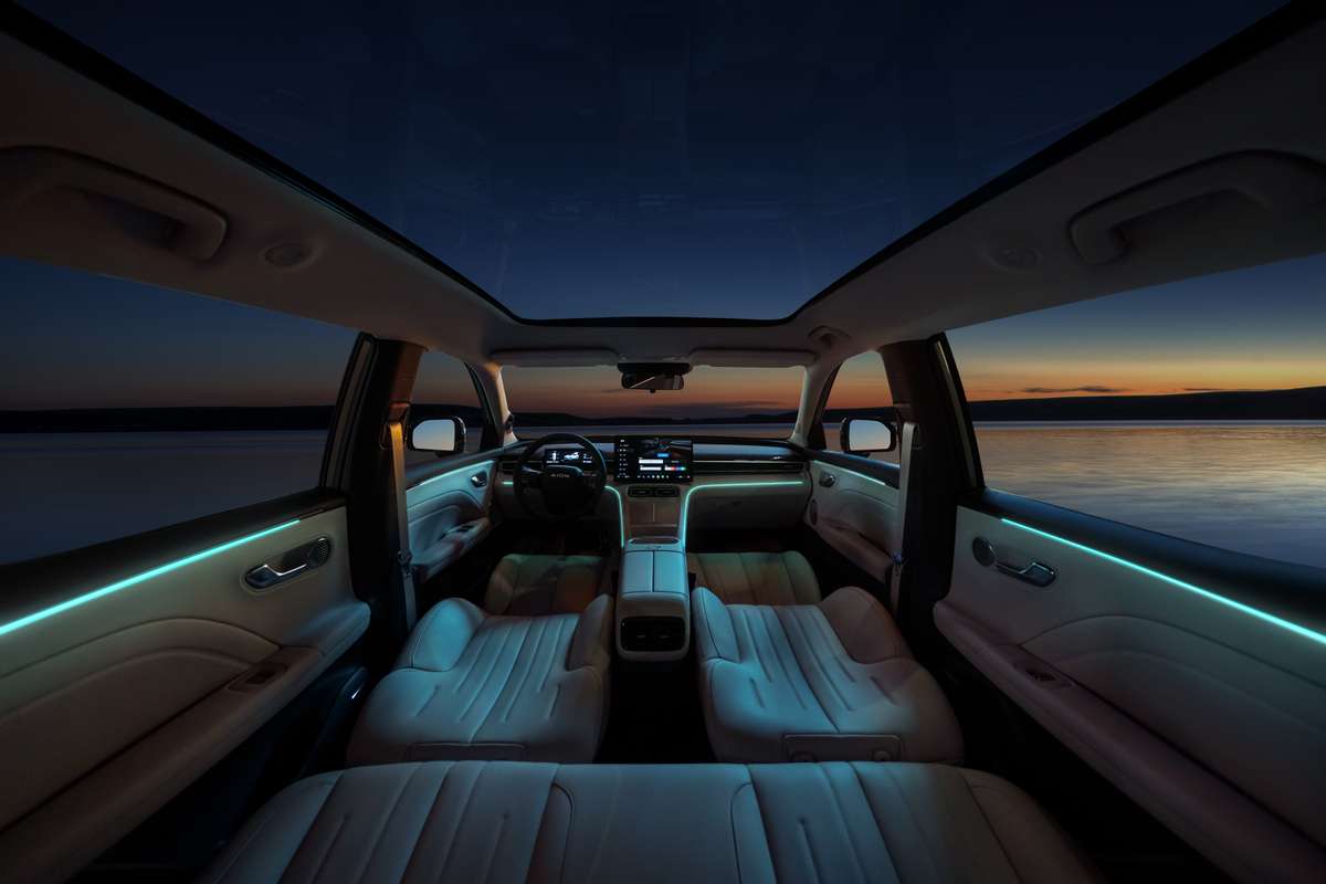 轴距2775mm,车身长度达4685mm,较AION V还增加了35mm,由此带来的大五座布局,后排膝部空间达到两拳半,后备箱标准容积达416L。座椅通风加热按摩、全景天窗、电动遮阳帘、后排小桌板、后排137°靠背角这些实用的设计和配置一应俱全。