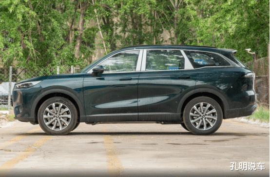 而比亚迪海狮06DM整体设计比较偏向于动感一些,从车头到车尾采用了大量的圆润边角处理,而且车头有比较夸张的分层灯光处理,但看车身侧面的话,这款车就是标准的大5座suv,所以对比来看侧窗的面积没有那么大。