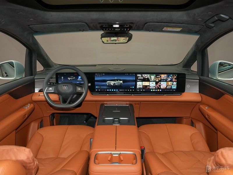 内饰方面,别克至境世家采用了全新的设计,配备由10.25英寸液晶仪表、16.3英寸中控屏和16.3英寸副驾娱乐屏组合三联屏布局,搭配50英寸AR-HUD抬头显示,座舱搭载高通最新一代8775P芯片,AI算力72TOPS,内置有AI大模型语音助手,能通过语音指令完成700多项车控功能。