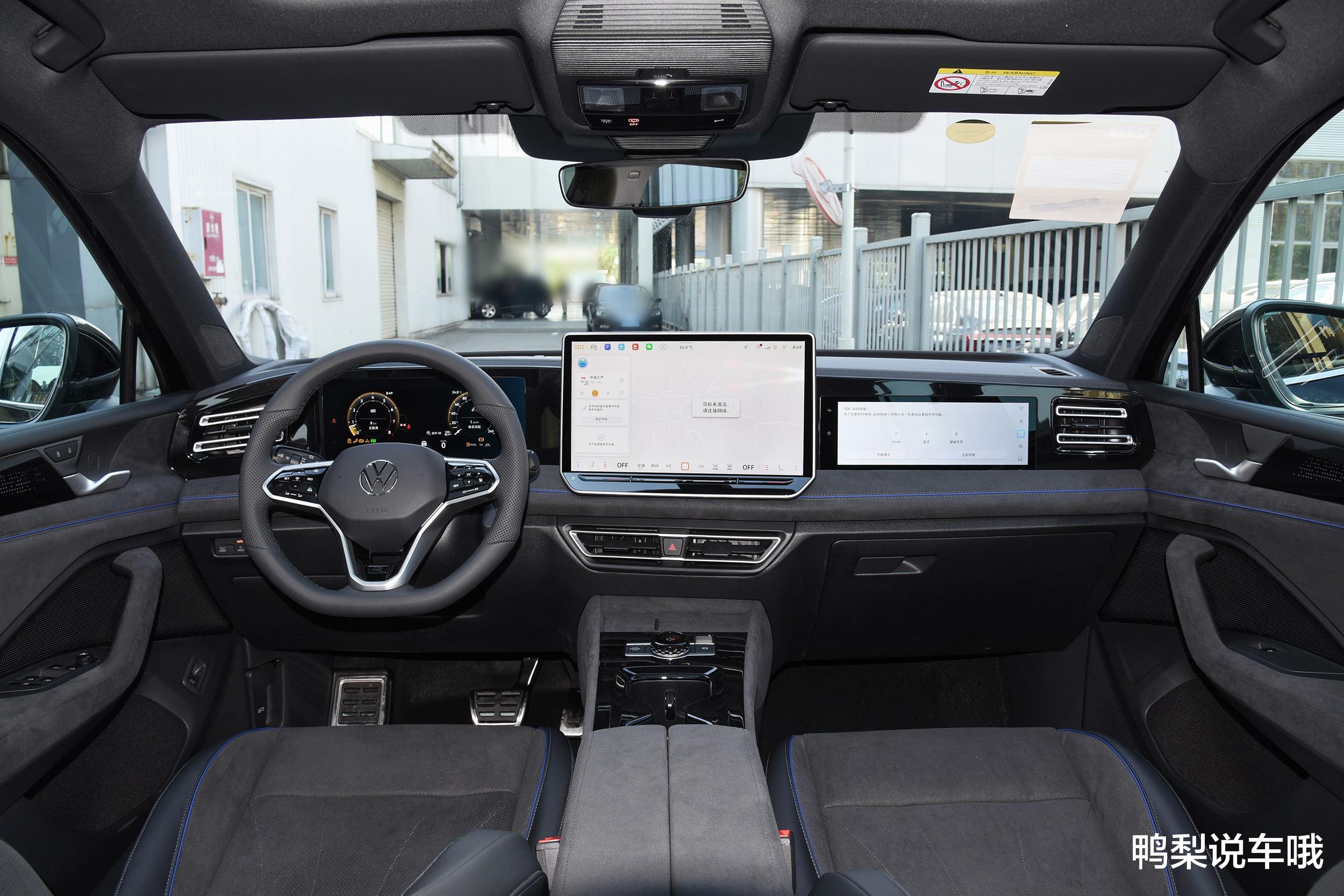 内饰方面,途观L Pro配备了10.3英寸全液晶仪表+15英寸中控屏的组合,高配车型还增加了副驾娱乐屏,车机全系标配高通骁龙8155芯片,科技感营造得相当到位。座椅采用皮/翻毛材质混搭,高配版本还配备通风和按摩功能,舒适性配置更为丰富。空调出风口下方改成了触控面板,虽然看起来高级,但盲操作时得适应一下。