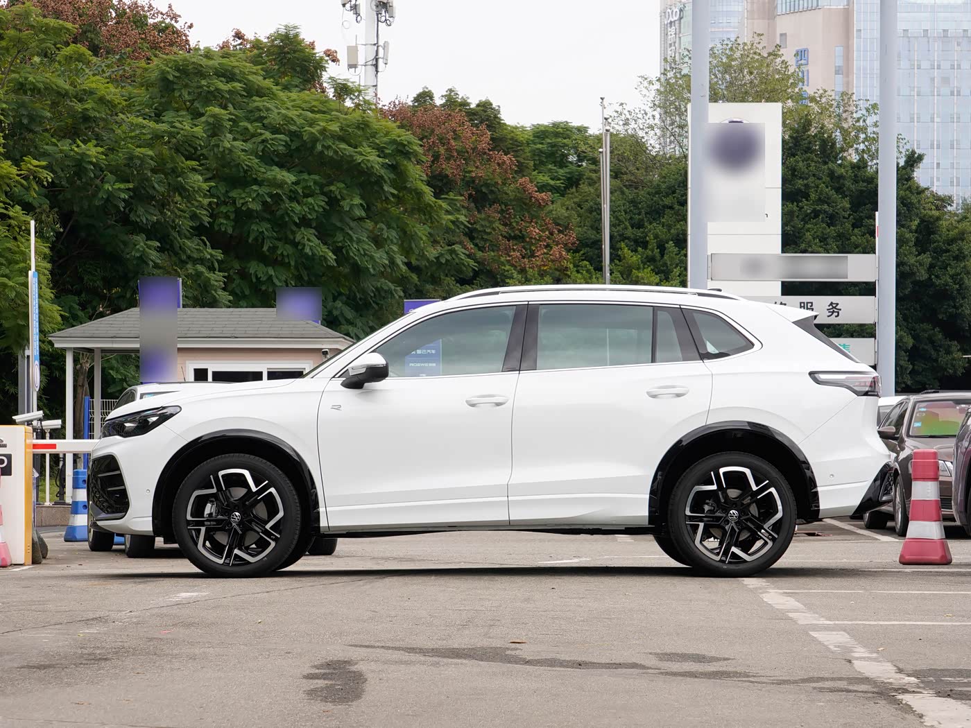 再来看车身侧面部分,车身侧面线条流畅且富有张力,车顶线条从B柱开始微微下压,与腰线形成优美的弧线过渡。R-Line专属的19英寸双色轮毂进一步强化了运动属性,而车顶行李架则兼顾了实用性与美观性。车身尺寸方面,4735mm的车长和2791mm的轴距确保了充裕的内部空间,同时保持了灵活的城市驾驶体验。隐藏式门把手不仅提升了科技感,还优化了风阻系数,使整车风阻系数降低。