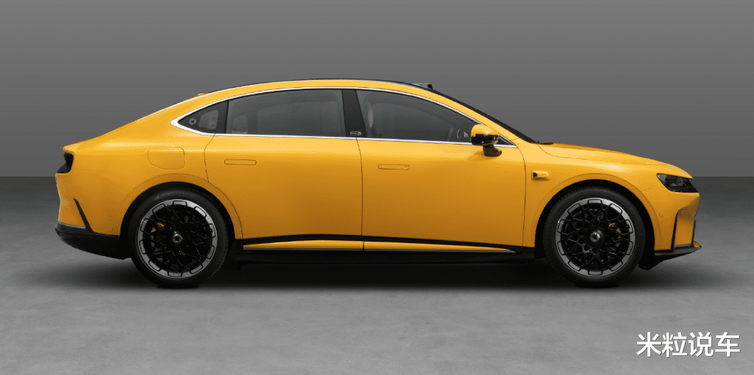 从侧面来看,匹配了车载摄像头,也采用了隐藏样式的电动门把手设计。而多辐式熏黑轮毂看起来也是很漂亮的。至于尾部,匹配了可升降的电动大尾翼以及贯穿样式的熏黑尾灯,确实与小米SU7极为类似。为了装饰出更漂亮的感觉,这款精灵#6 EHD还匹配了黄色的刹车卡钳,也拥有溜背样式的车顶,整个车身轮廓形成了前长后短的运动化设计。