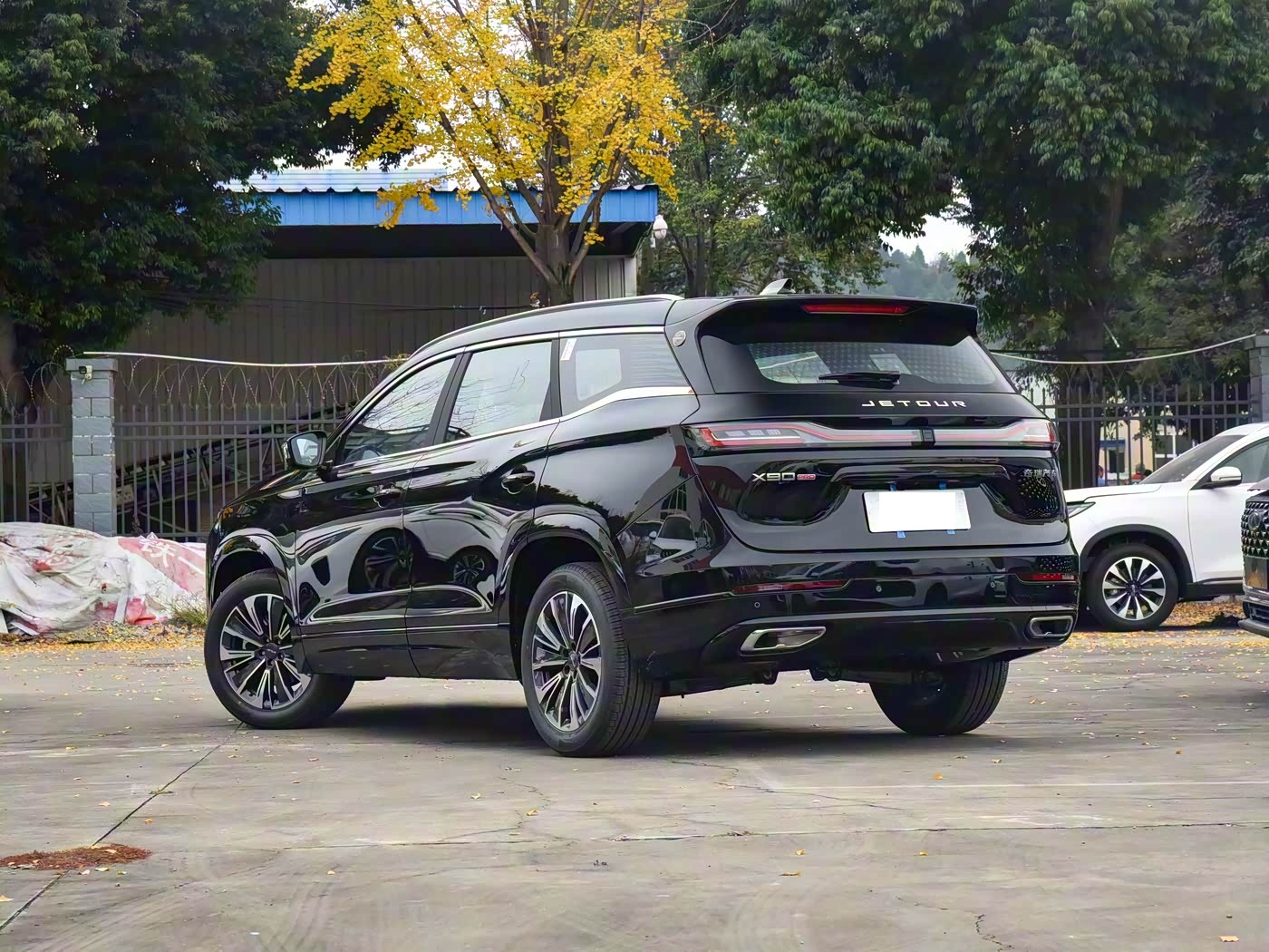再来看车尾部分,车尾设计以简洁为主,贯穿式尾灯内部结构经过重新设计,LED光源点亮后效果醒目,夜间辨识度极高。底部双边两出排气布局与银色护板相结合,既强化了运动属性,又提升了整体质感。尾门线条平直,与车顶的扰流板形成呼应,确保了后备厢的实用性。此外,车尾下方配备了220V电源接口,这一细节设计大大提升了户外使用的便利性,体现了捷途对用户需求的深入洞察。
