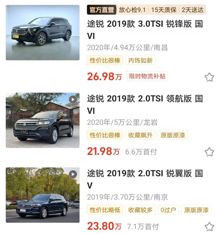 查了下二手途锐的价格,其以一个超出我预期的价格,呈现在了市场面前。
