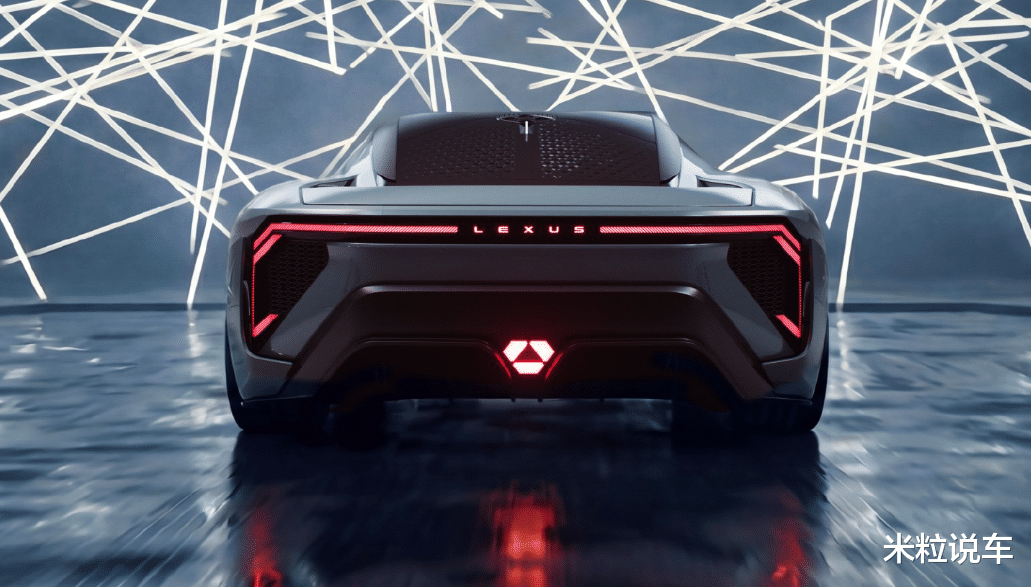 从侧面我们能够看到采用的是双开门设计,并且与车头部分一样,有着大量的空气运动套件,整个车身姿态形成了短前悬短后悬的设计,所以说车内的空间感会保持得更好。而车顶部分的设计更像是来自外太空的宇宙飞船。尾部是我认为整个外观最为惊艳的设计,尾部酷似火箭推射器,特别是贯穿样式的尾灯,与运动包围高效融合在一起,搭配上三角样式的独特标识,这样的炫酷感,你还觉得雷克萨斯的电车是杂牌吗?