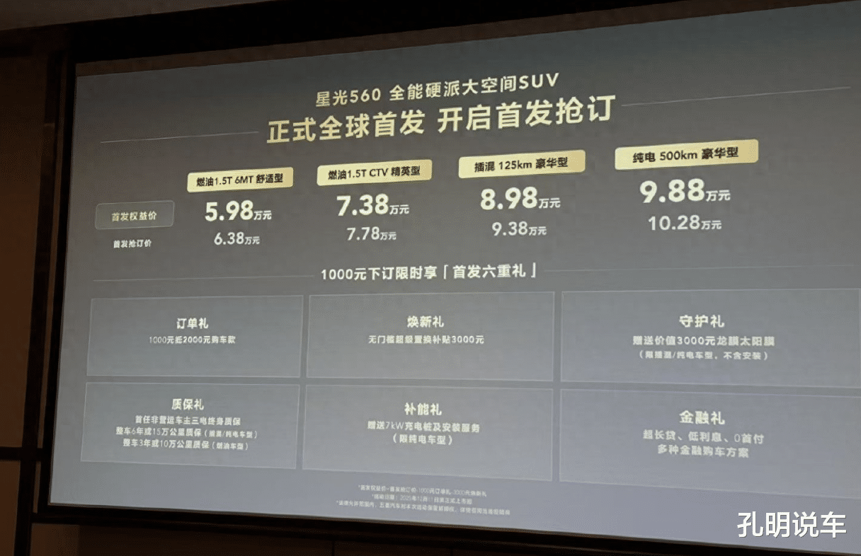 长期以来上汽通用五菱这个品牌就是走性价比路线的,现在依然是如此,比如近日已经开启预售的全新五菱星光560,这个系列和之前的五菱星光730非常类似,就是一步到位直接上市纯燃油版,插电混动版本,以及纯电动版本,每一条技术路线都要走,而且全系不同版本的价格也都压得比较低。