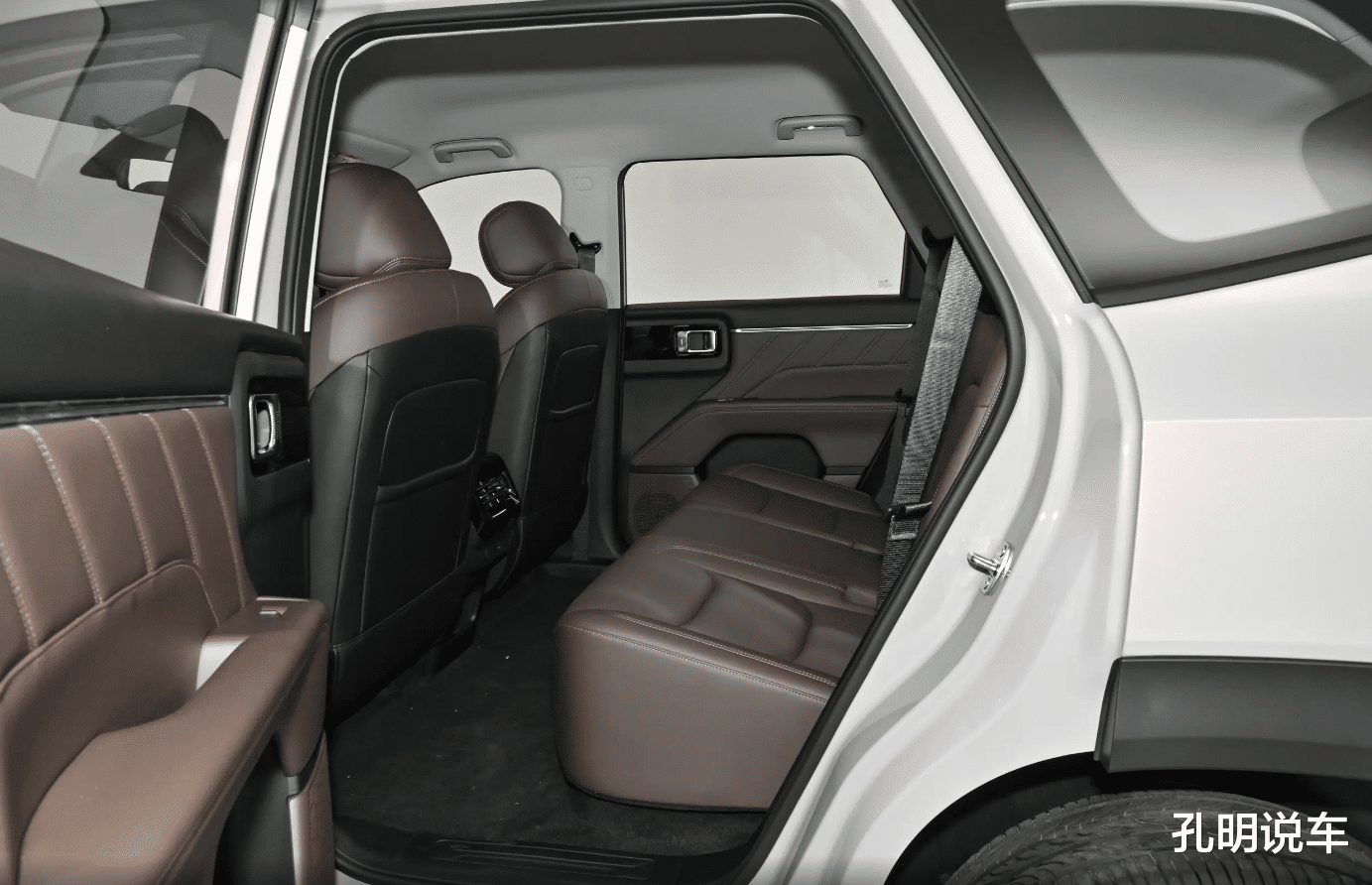所以长轴距带来了比较明显的大空间,这次打开后排车门之后视觉效果就非常宽大了,再加上整个后排地板搞成纯平,以及加宽加大的大坐垫后排沙发,实际的腿部空间乘坐体验甚至可以超过哈弗H6或者长安cs75plus这样的经典选手。