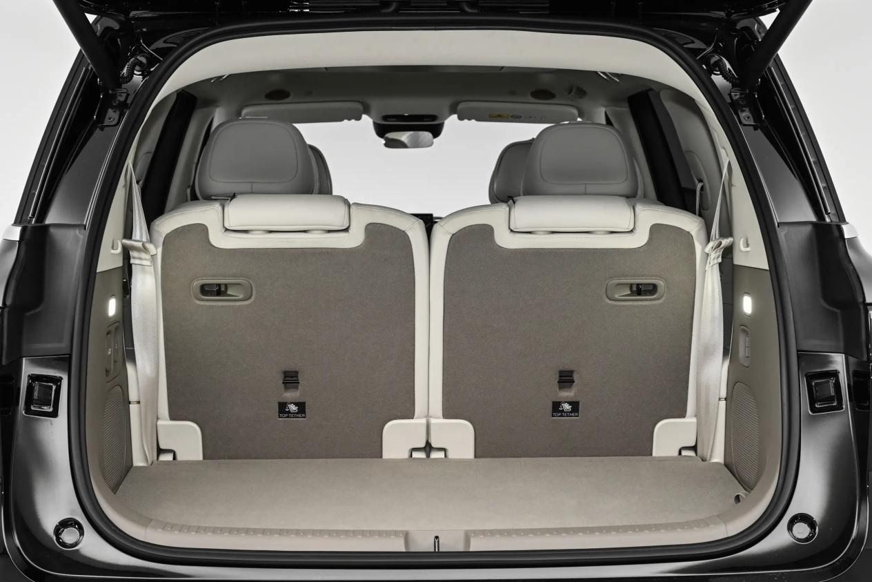 第三排座椅的坐垫深度达到515毫米,靠背支持电动调节,能调到143°躺姿,标配加热功能,座椅头部空间为955毫米,肩部空间为1308毫米,成年人乘坐不会感到压抑。第三排还配备独立空调出风口和Type-C充电接口,实用性和舒适性都没毛病。