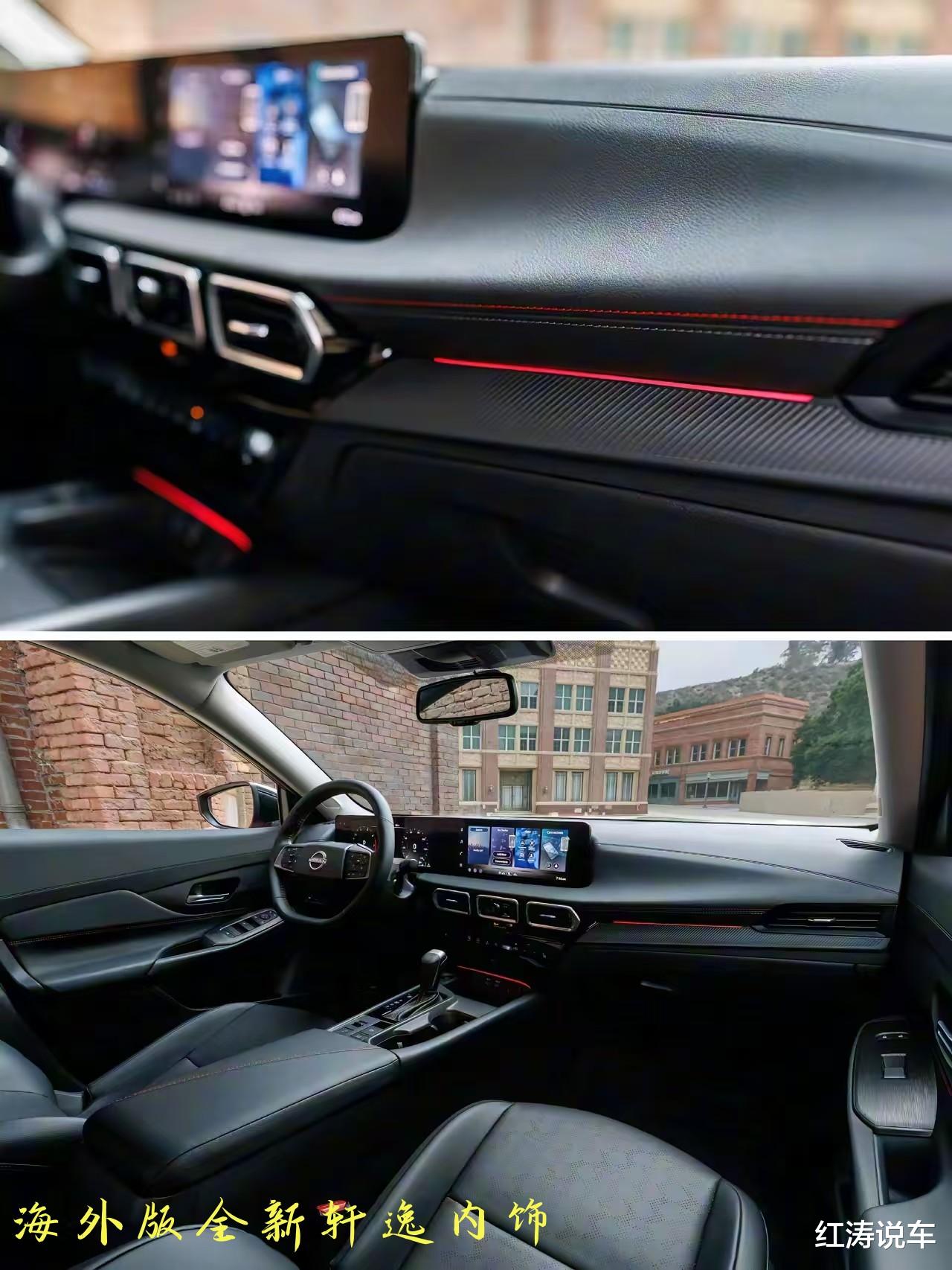 外观方面,全新一代轩逸同步了海外版全新轩逸的设计,和我们国内在售的轩逸以及轩逸经典有着明显的不同!车头看起来更加的扁平低趴,大尺寸黑色飞翼状格栅几乎占据了前脸三分之二的面积,富有视觉冲击力,悬浮立体式车标两侧使用了镀铬饰条,和左右熏黑大灯相连,灯腔内为矩阵式全LED光源,搭配一侧獠牙般的日间行车灯,颇有攻击性!